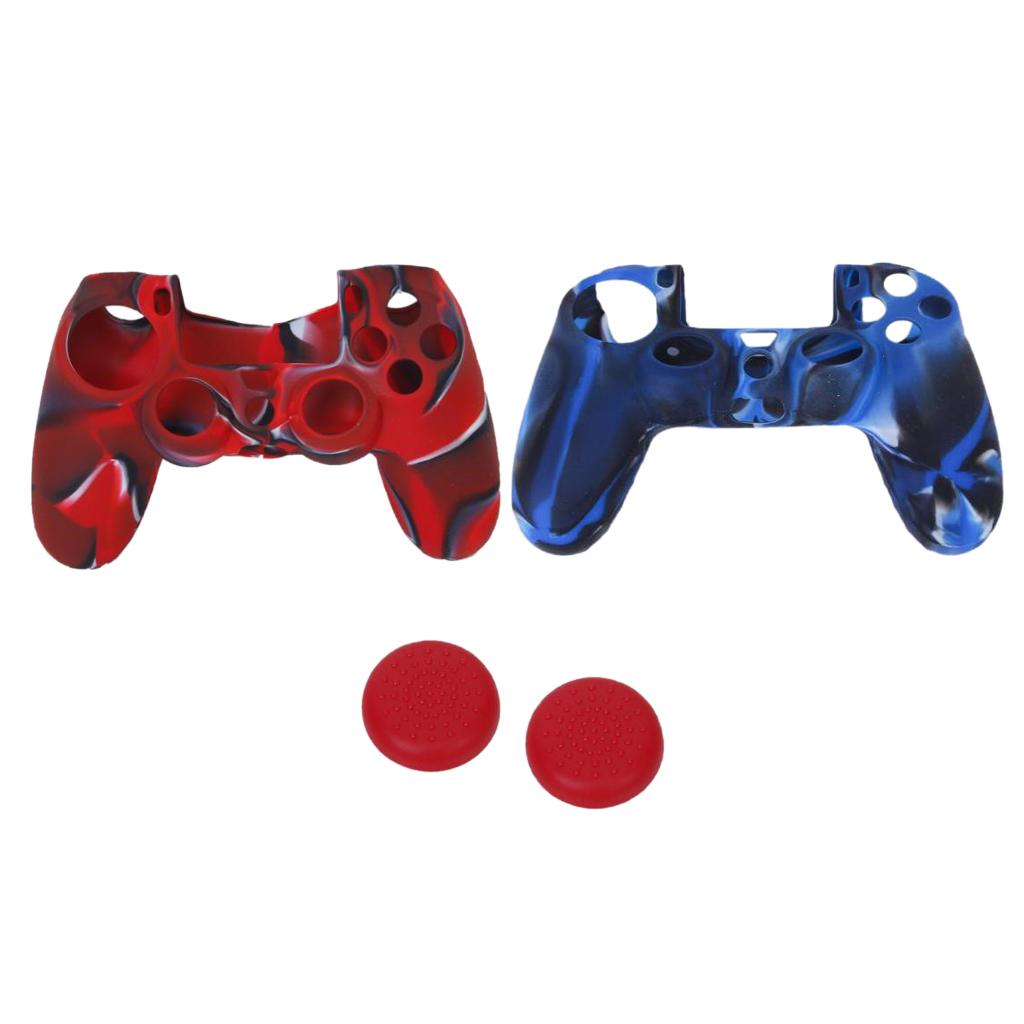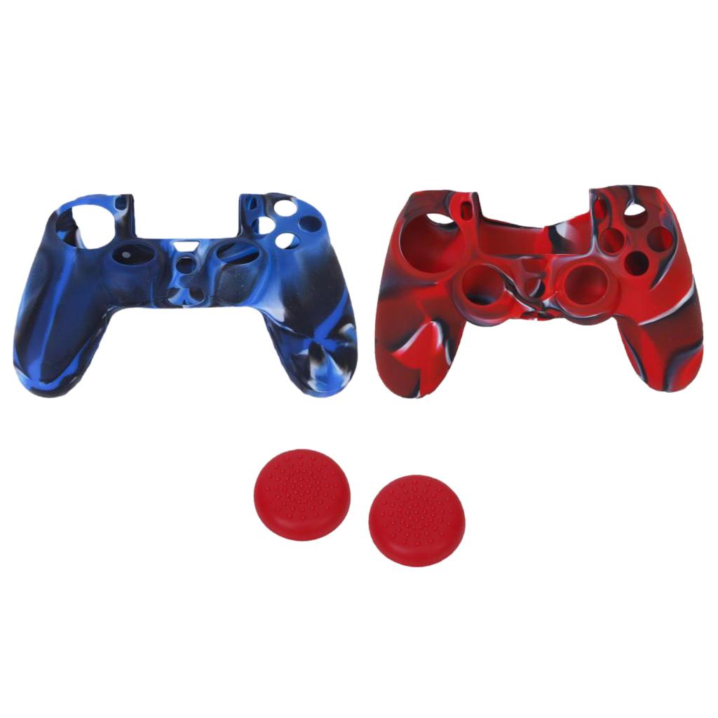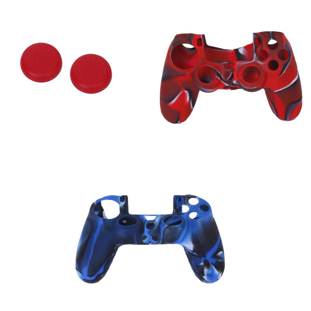 Silicone Protective Skin Case Cover + Joystick Cap for Sony PS4 Controller
