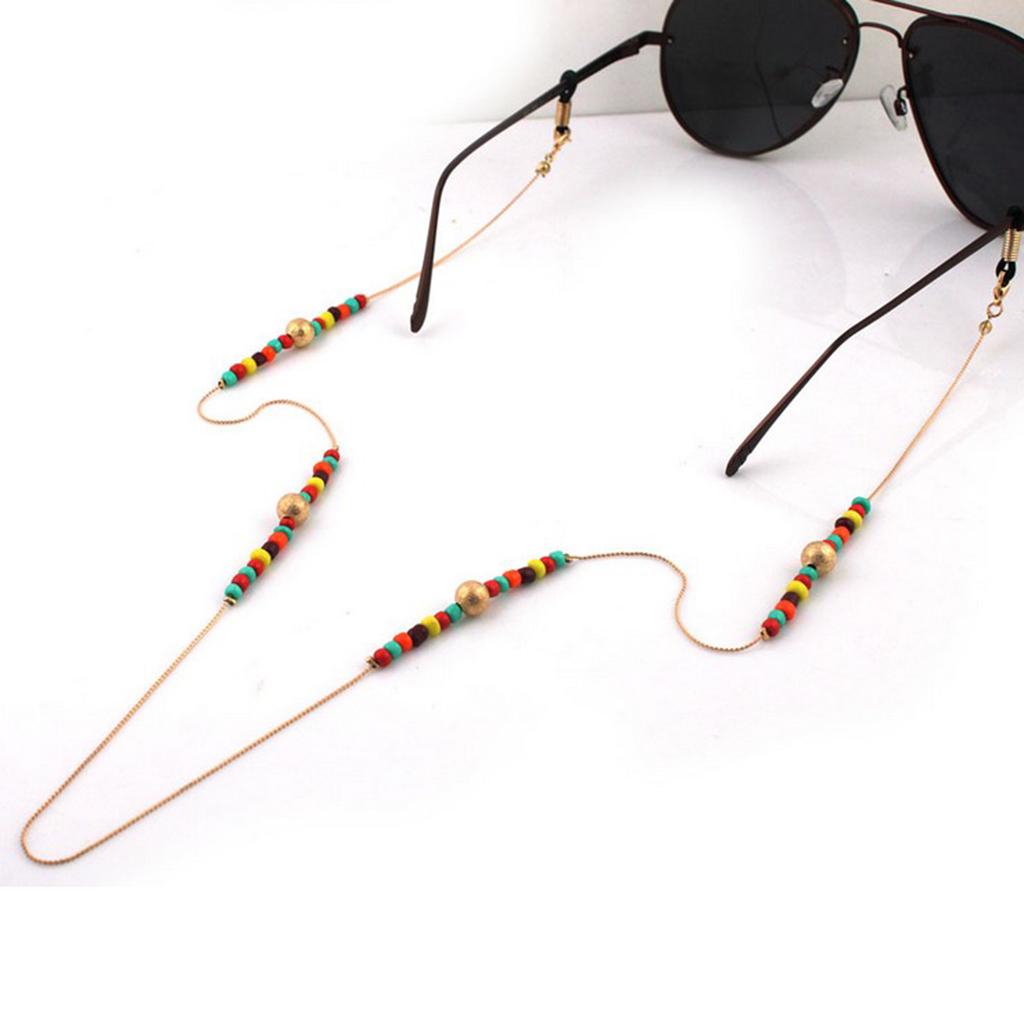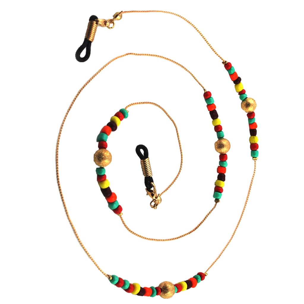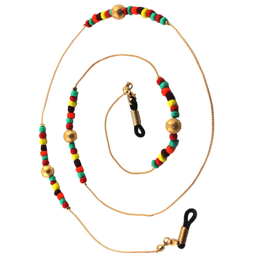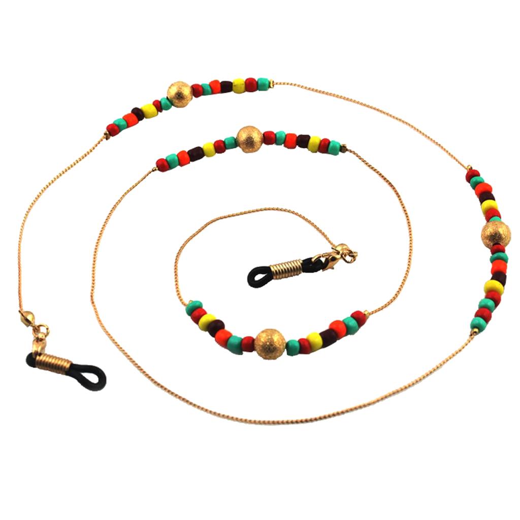 rubber ends with metal coils ,colorful beads eyeglass chain with gold metal ball