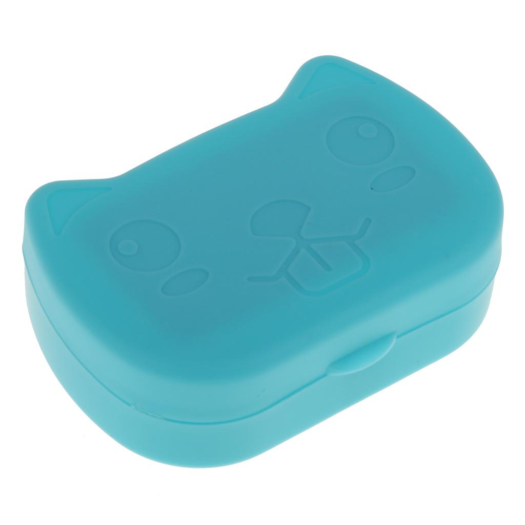 Portable Cute Plastic Cat Design Contact Lens Holder Case Organiser Box Travel Accessories Blue
