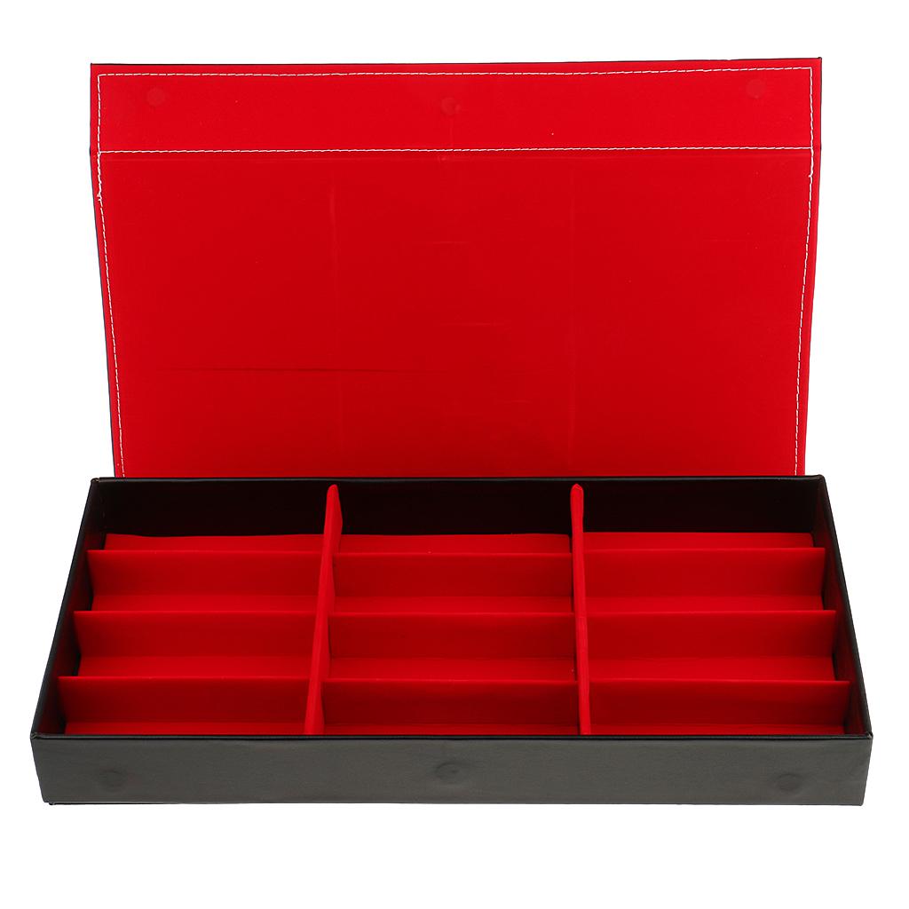 PU Leather 12 Slot Eyeglass Sunglasses Glasses Storage Display Case Red