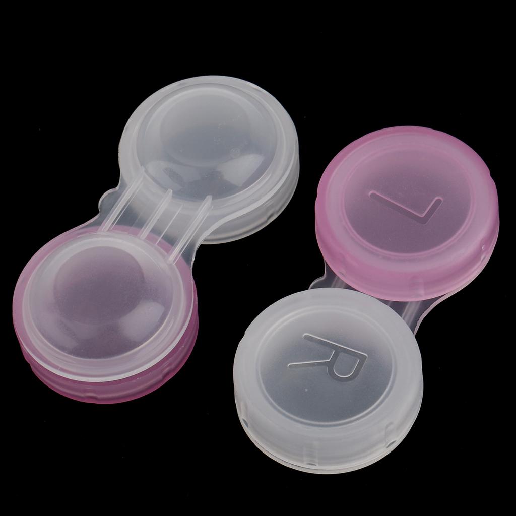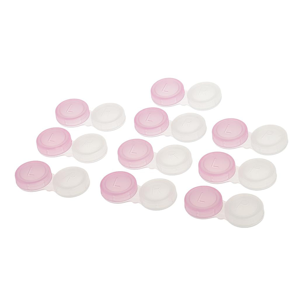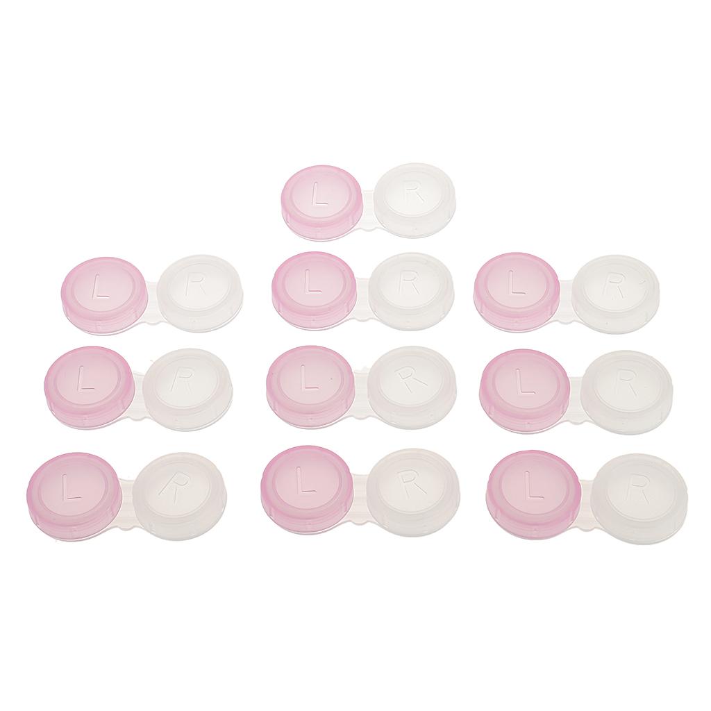 Set Of 10PCS Compact Portable Contact Lens Case Storage Box Organizer Travel Accessory Pink Transparent