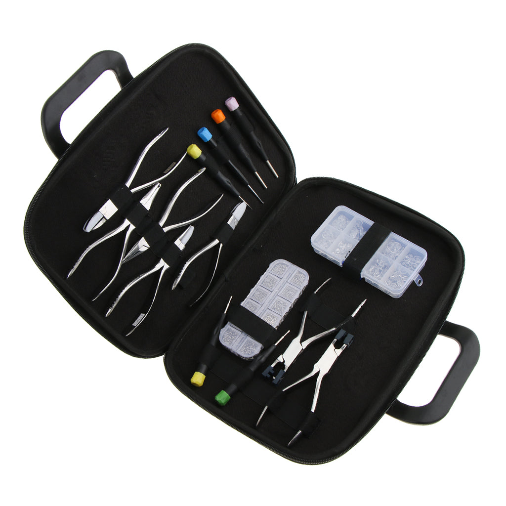 Perfect eyeglasses repair set, including nose pads, Tiny Screw Nut accessories, Pliers and Screwdrivers.