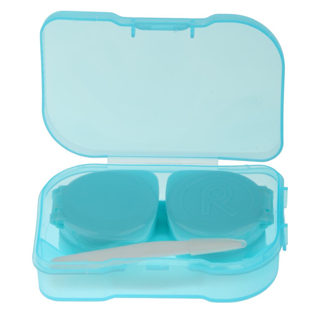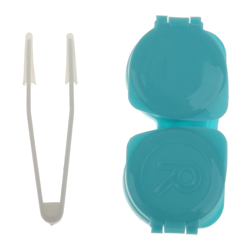 Set Of Plastic Stylish Compact Lens Tweezers + The Stick with Sucker + Contact Lens Case + Lens Solution Bottle Travel Accessory Blue 6.5 x 4 cm