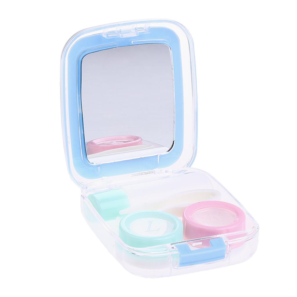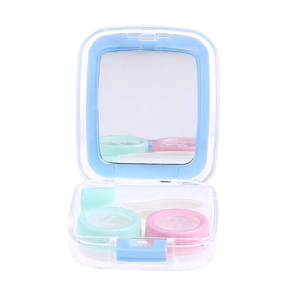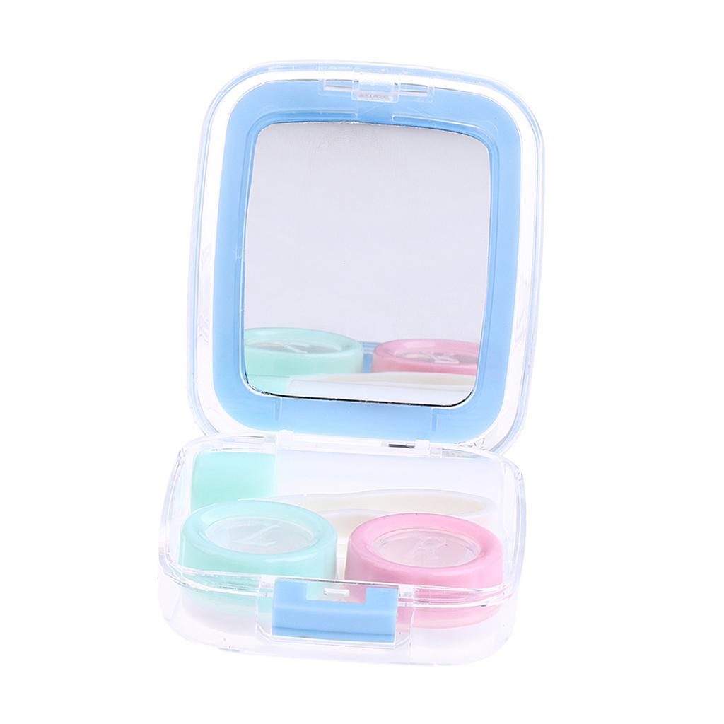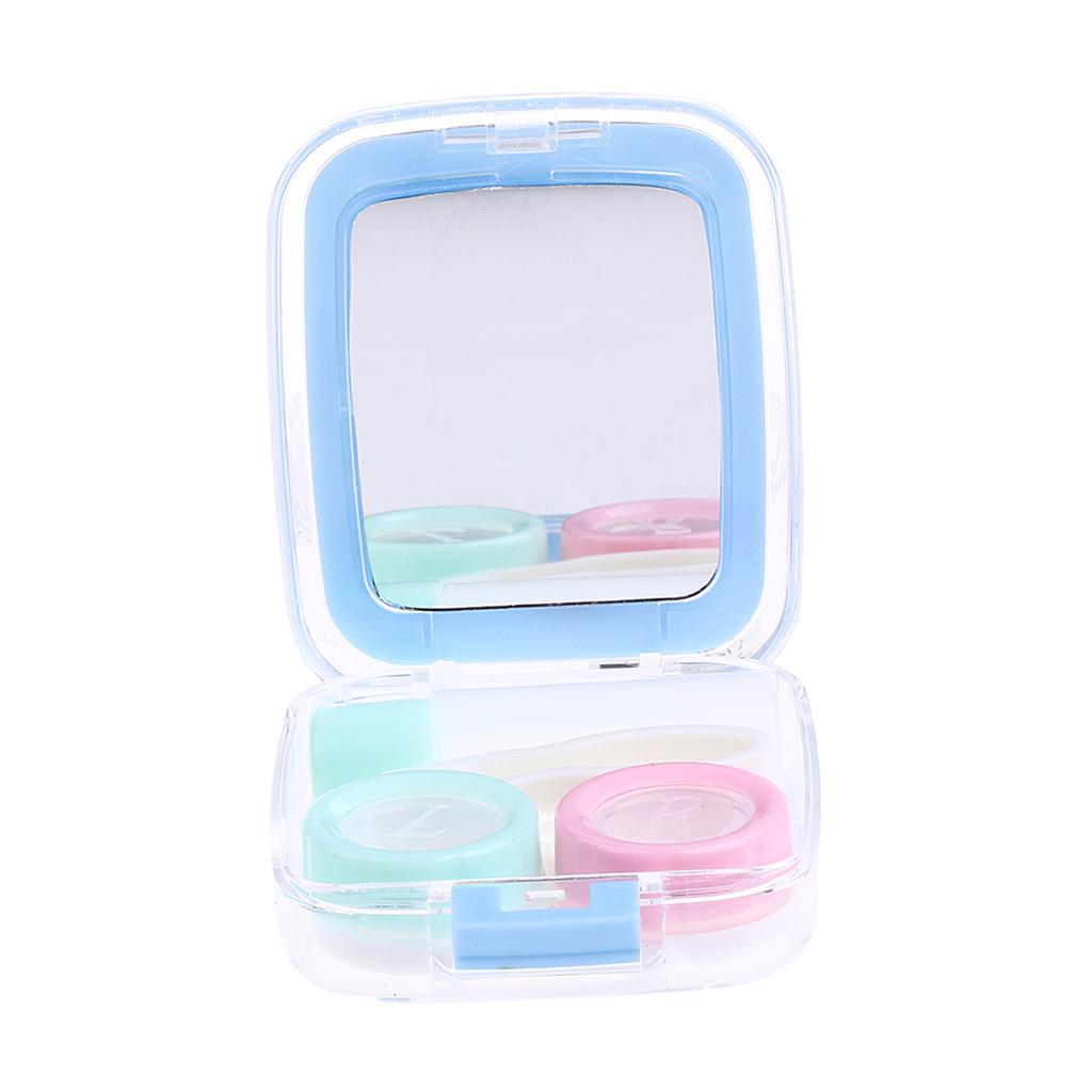 Travel Cute Mini Contact Lens Case Holder Storage Mirror Box Container Blue