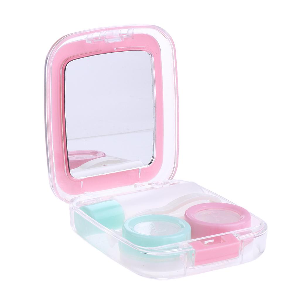 Travel Cute Mini Contact Lens Case Holder Storage Mirror Box Container Pink