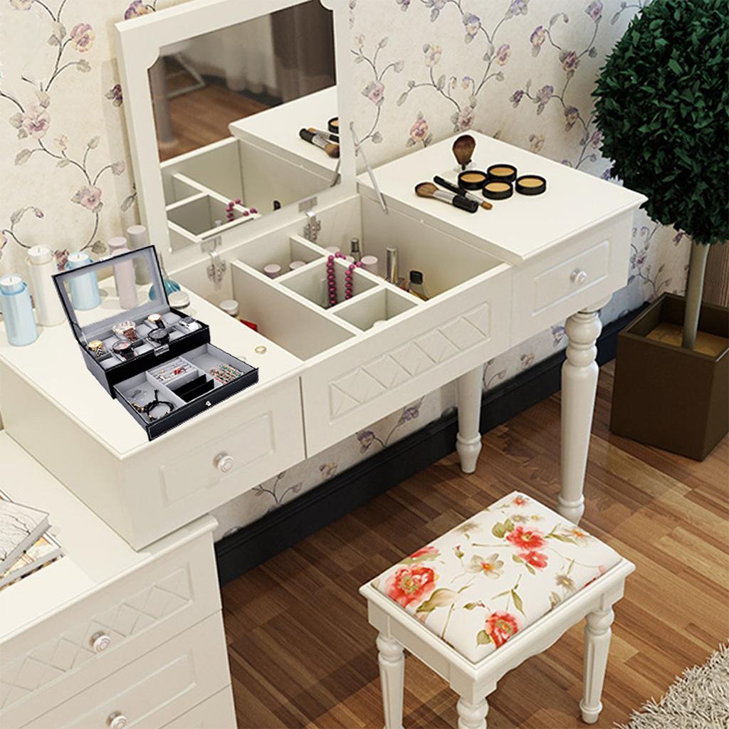 Made of quality black faux leather and soft gray velvet, this jewelry box is super excellent to protect your beloved jewelry from scratch and damage.