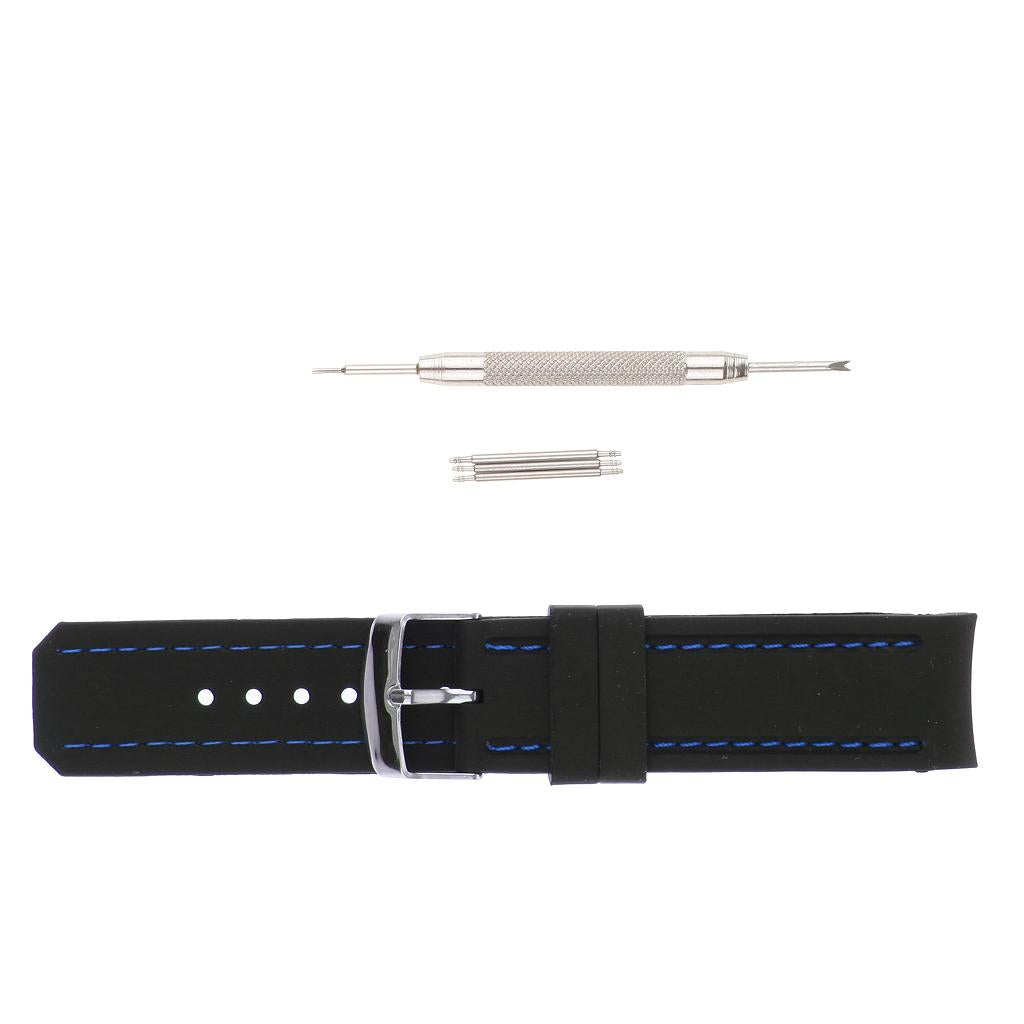 This replacement watch band is constructed of premium silicone rubber and has a solid polished stainless steel tang buckle;