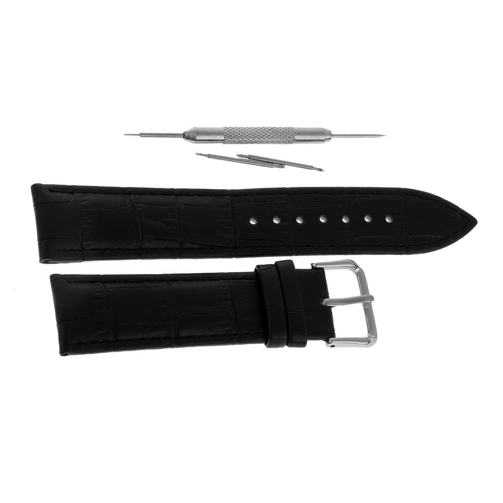 Artificial Leather Watch Strap,Watch Band Wrist Replacement Pin 22 mm Black