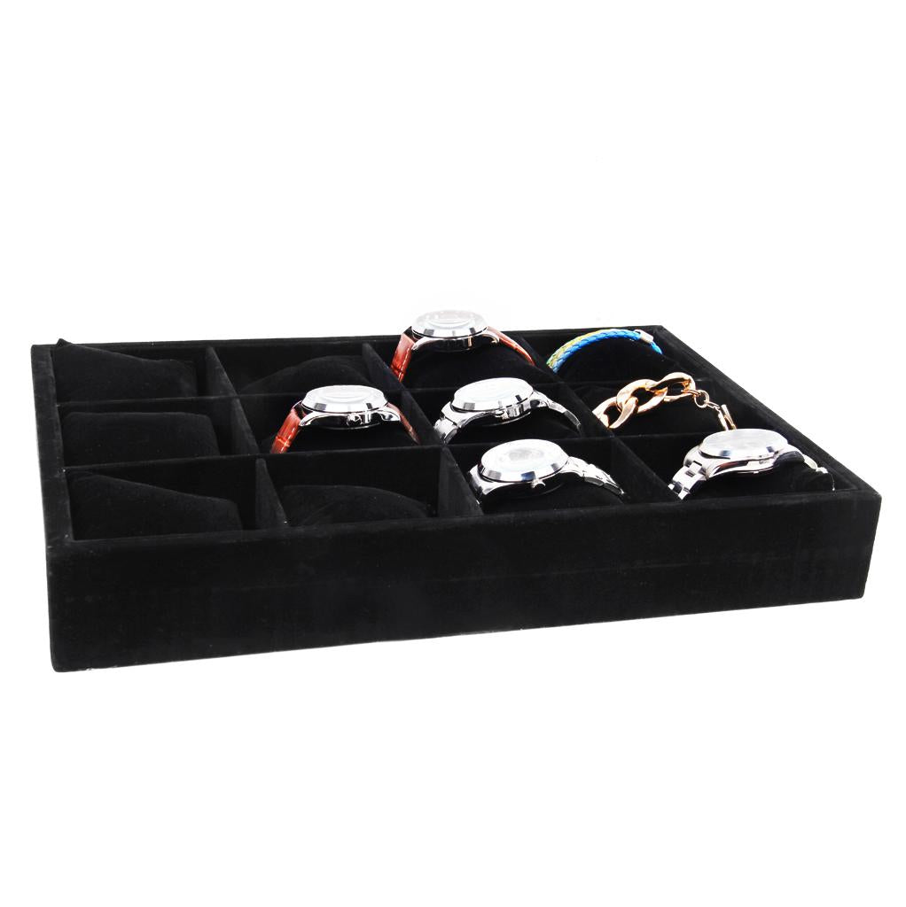 Black 12-Grid Watch Bracelet Display Storage Tray Case Holder Organizer with Pillow