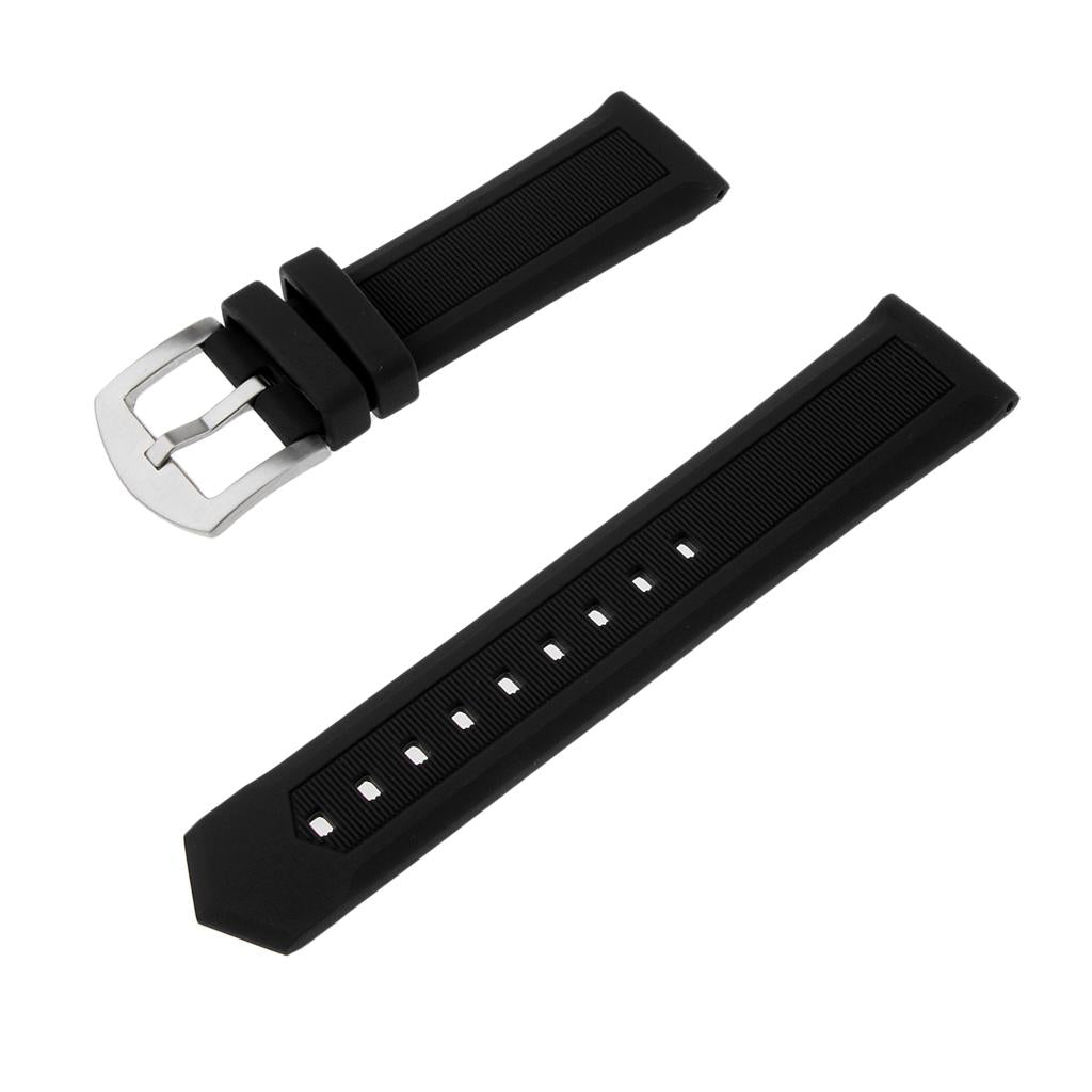 Black Silicone Rubber Sport Replacement Watch Band Strap 19mm Silver