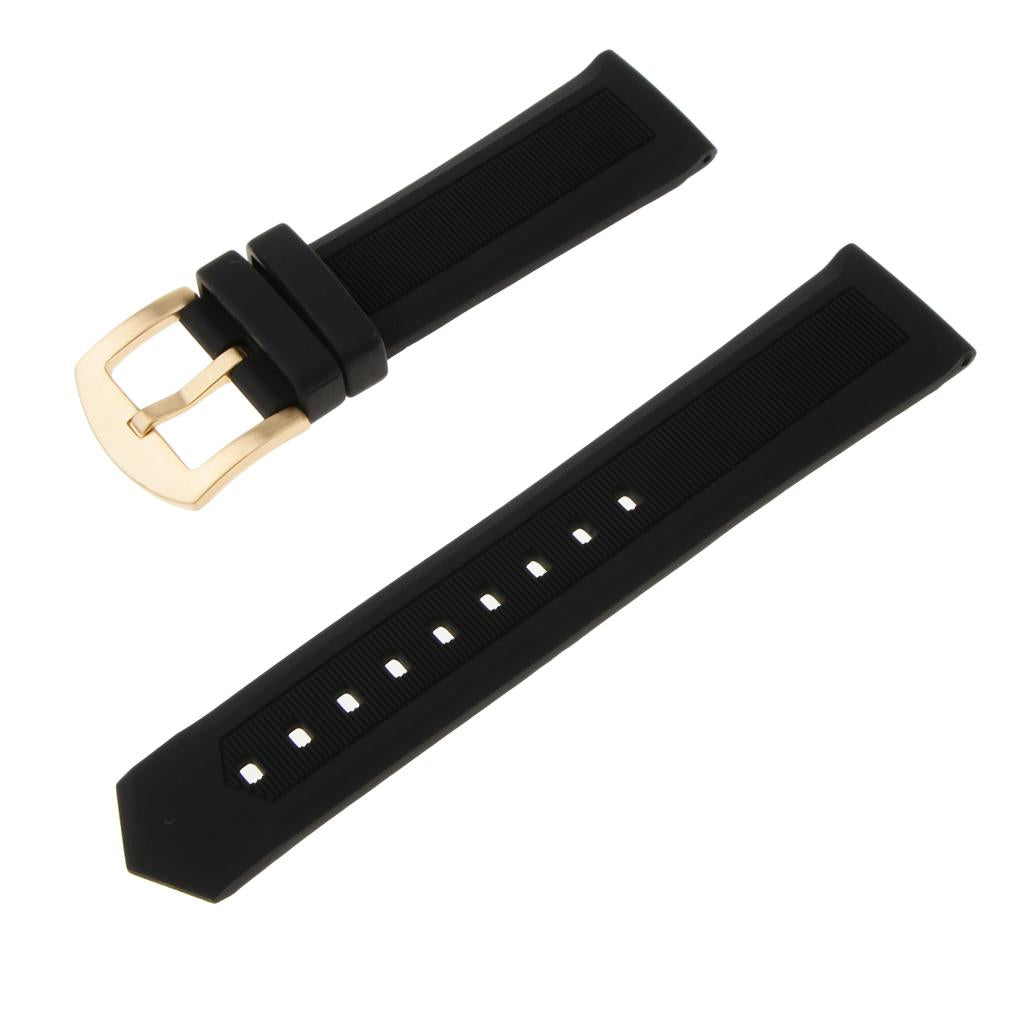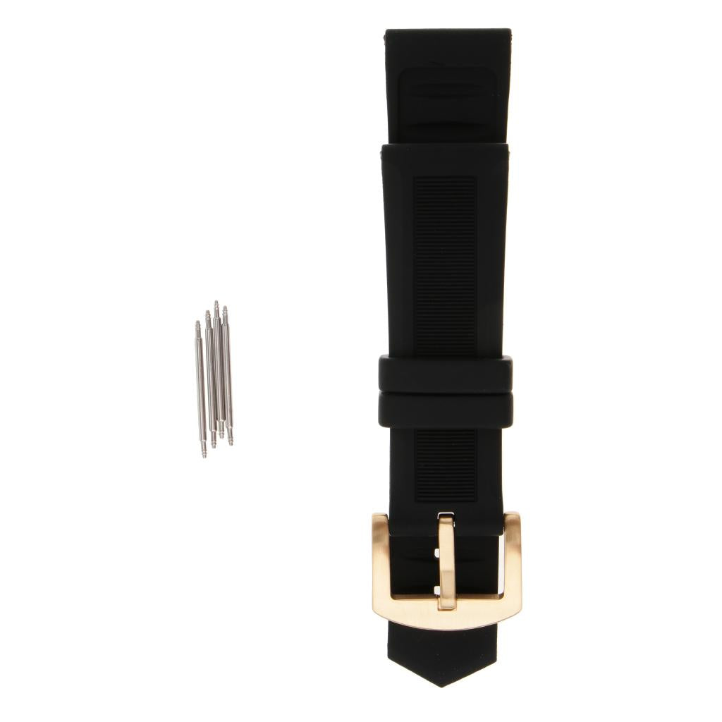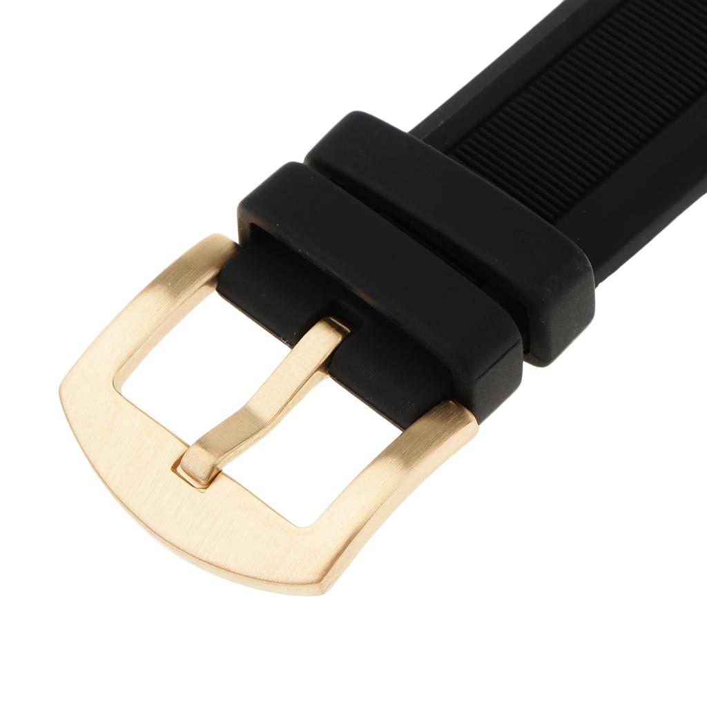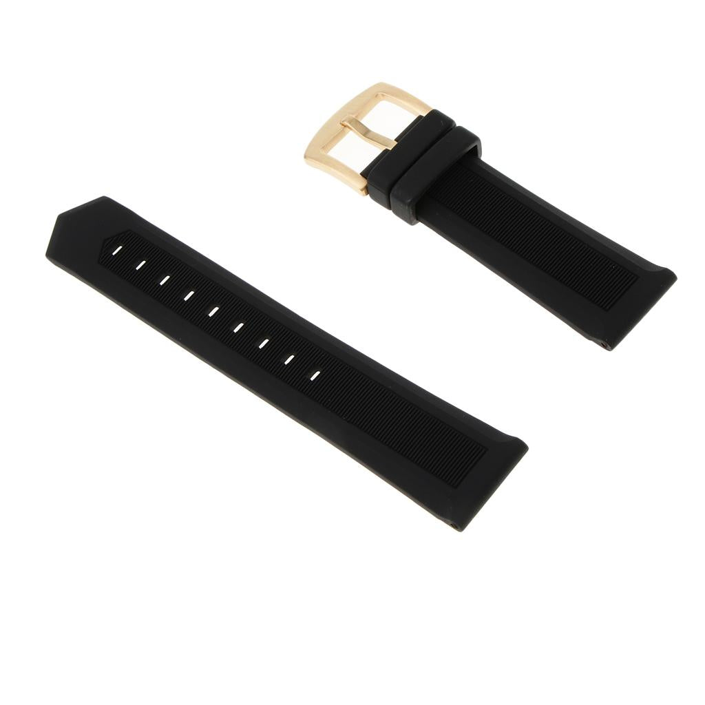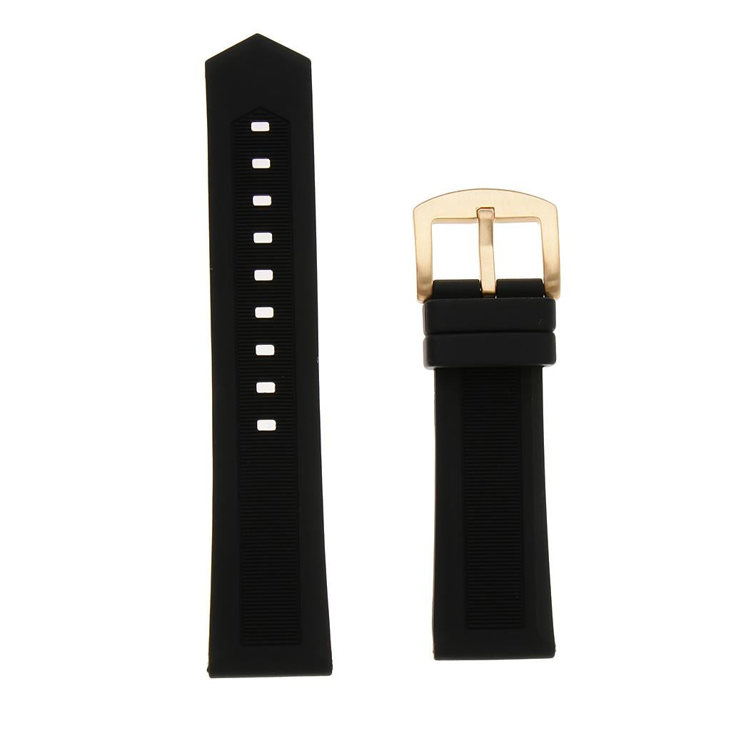 Black Silicone Rubber Sport Replacement Watch Band Strap 22mm Gold