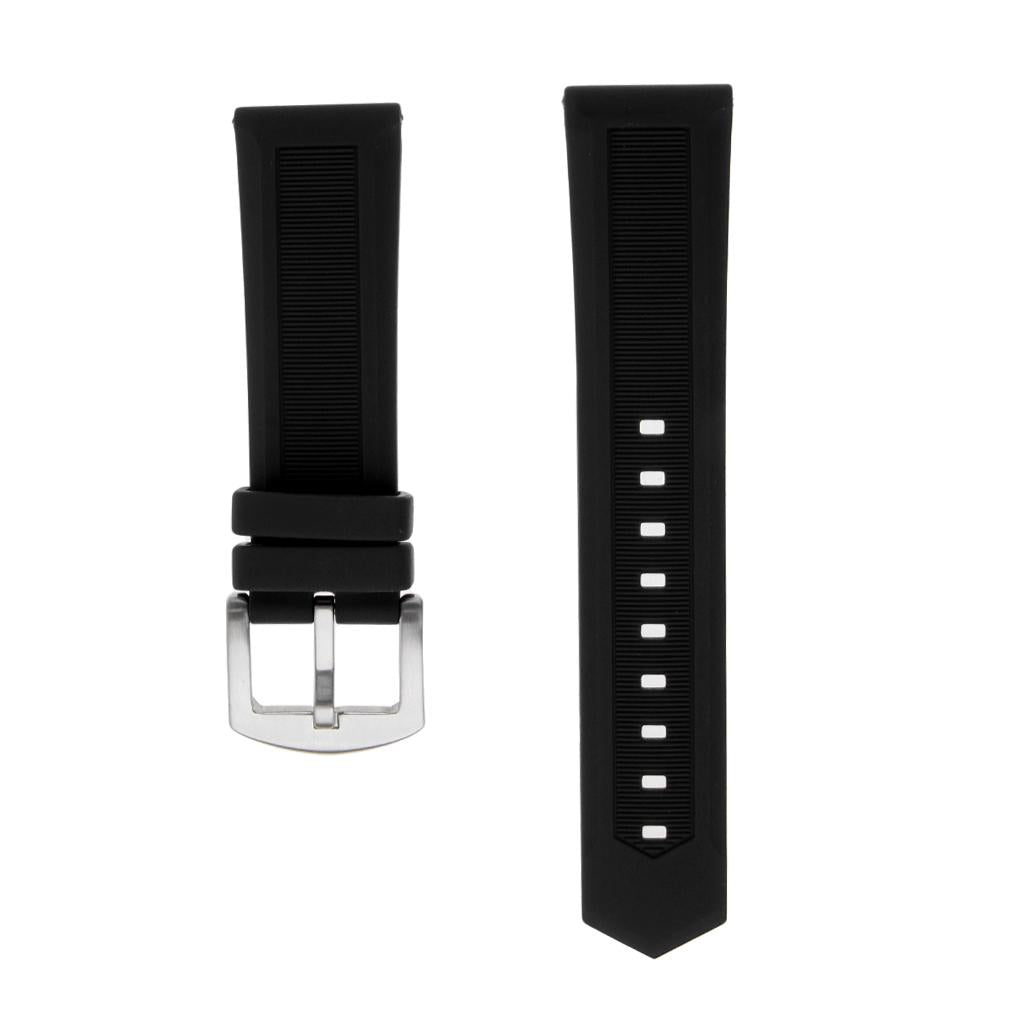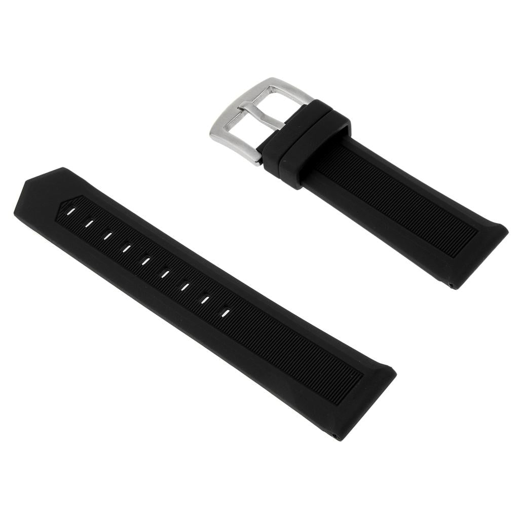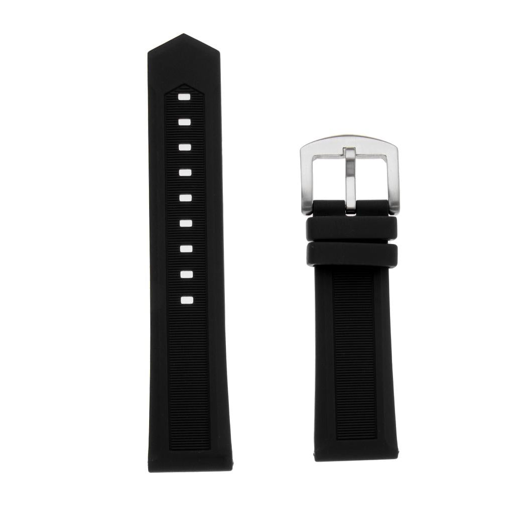 Black Silicone Rubber Sport Replacement Watch Band Strap 24mm Silver
