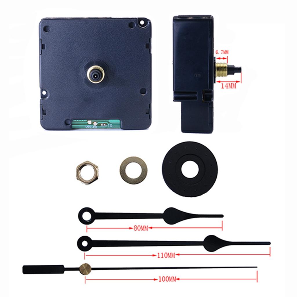 Size: total shaft length: 14mm (0.55 inch); Thread length: 6.7mm (0.26 inch); Jump Second Radio Clock Movement type, suitable for products with panel thickness of about 3 mm thick and it is suitable for the panel diameter of about 240-300mm.