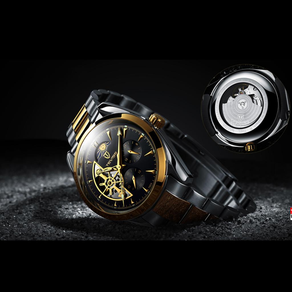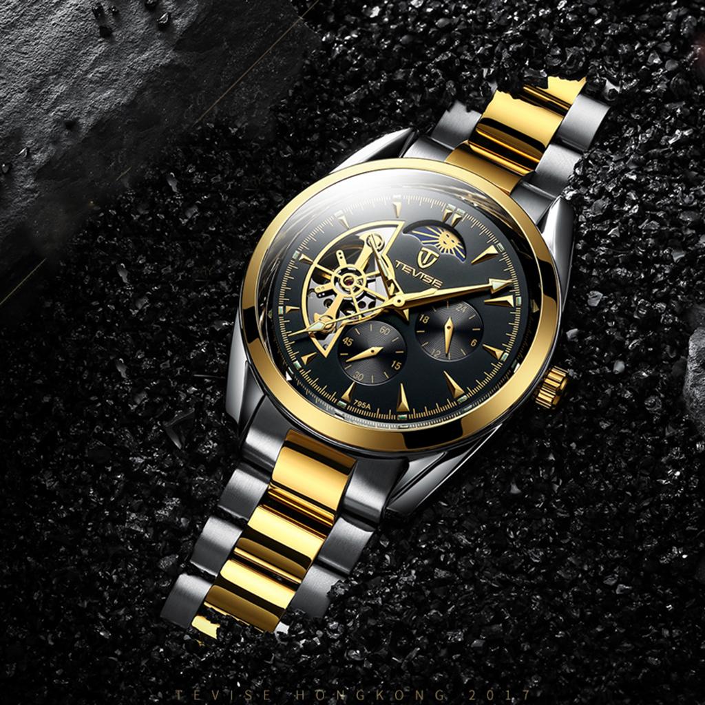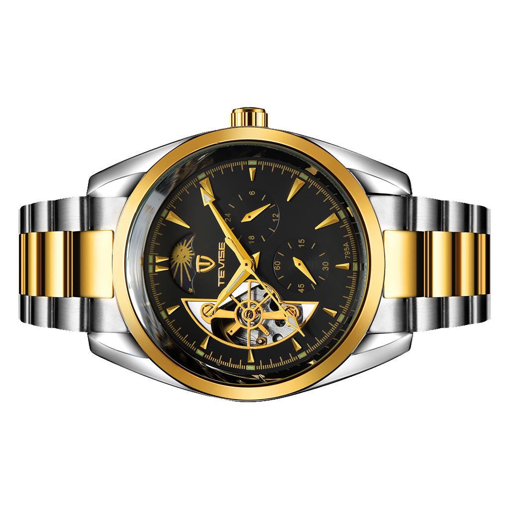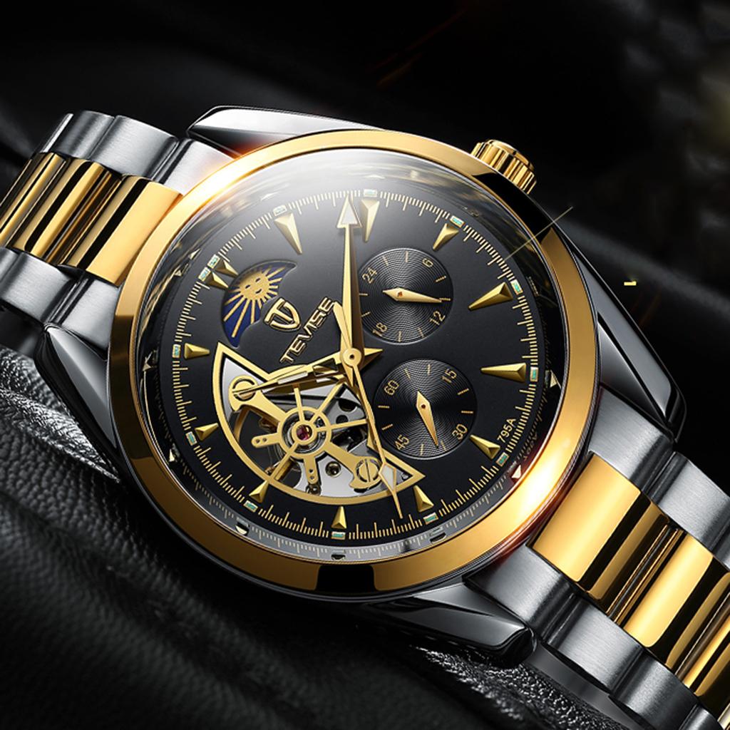 Luxury Men's Automatic Mechanical Moon Phrase Wristwatch Waterproof Gold
