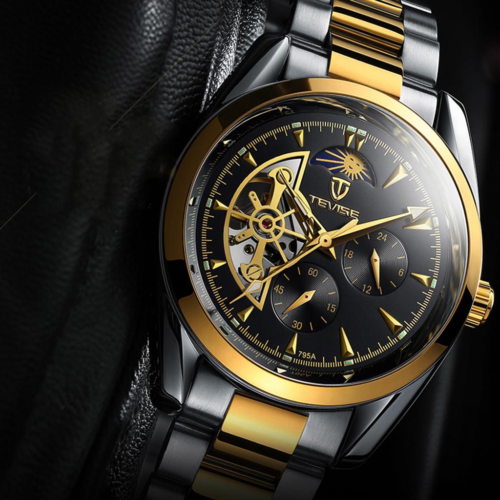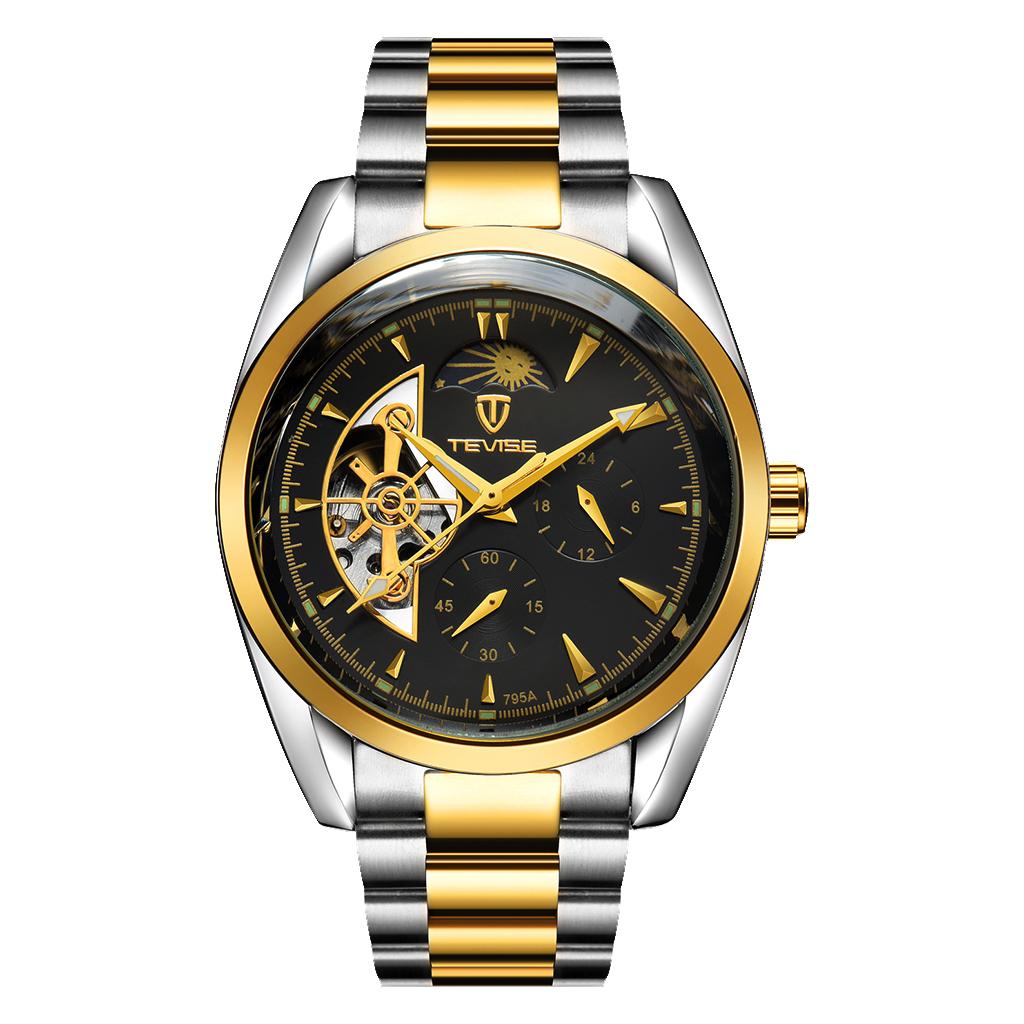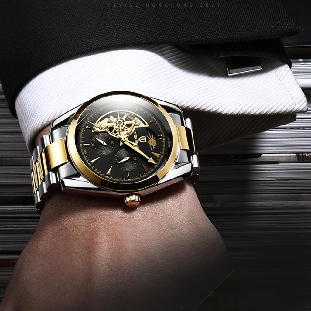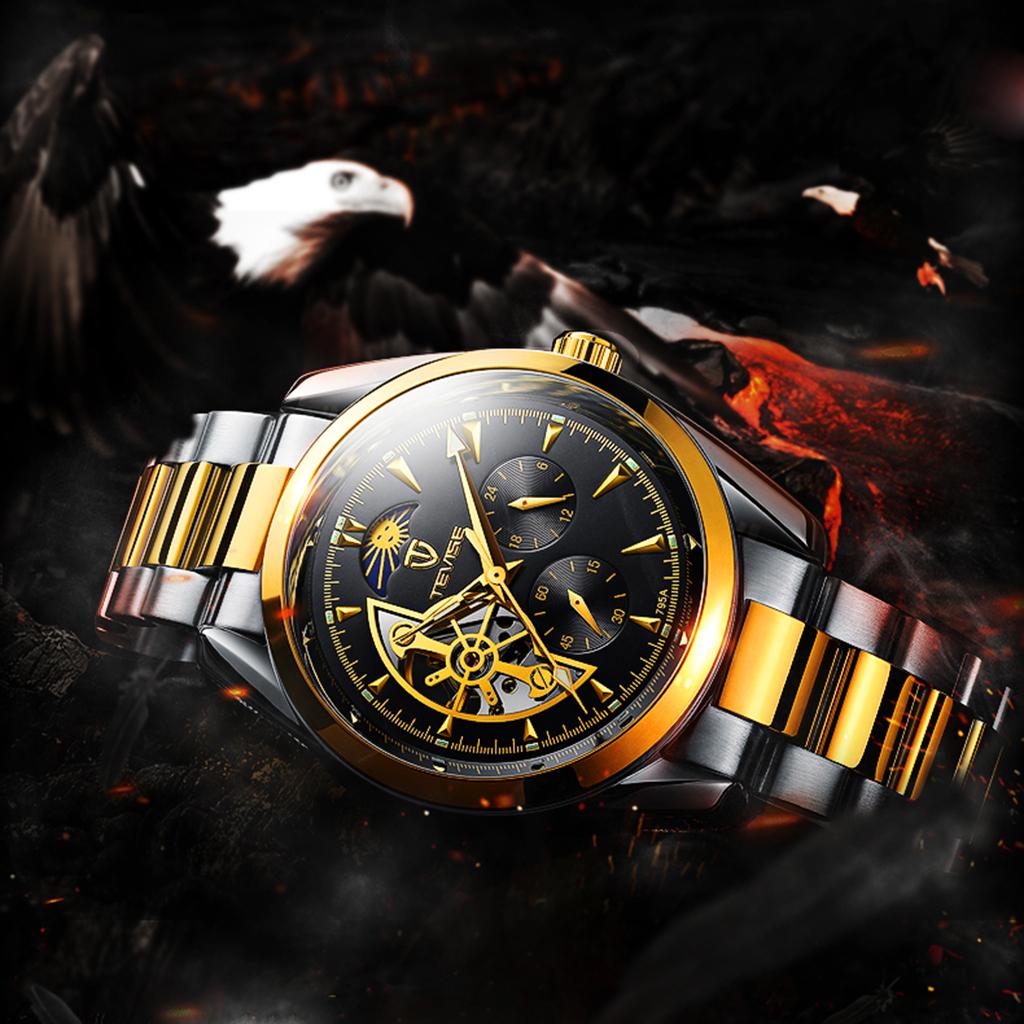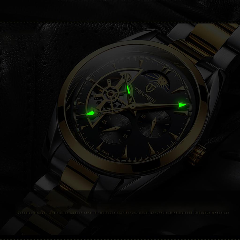 Luxury Men's Automatic Mechanical Moon Phrase Wristwatch Waterproof Gold
