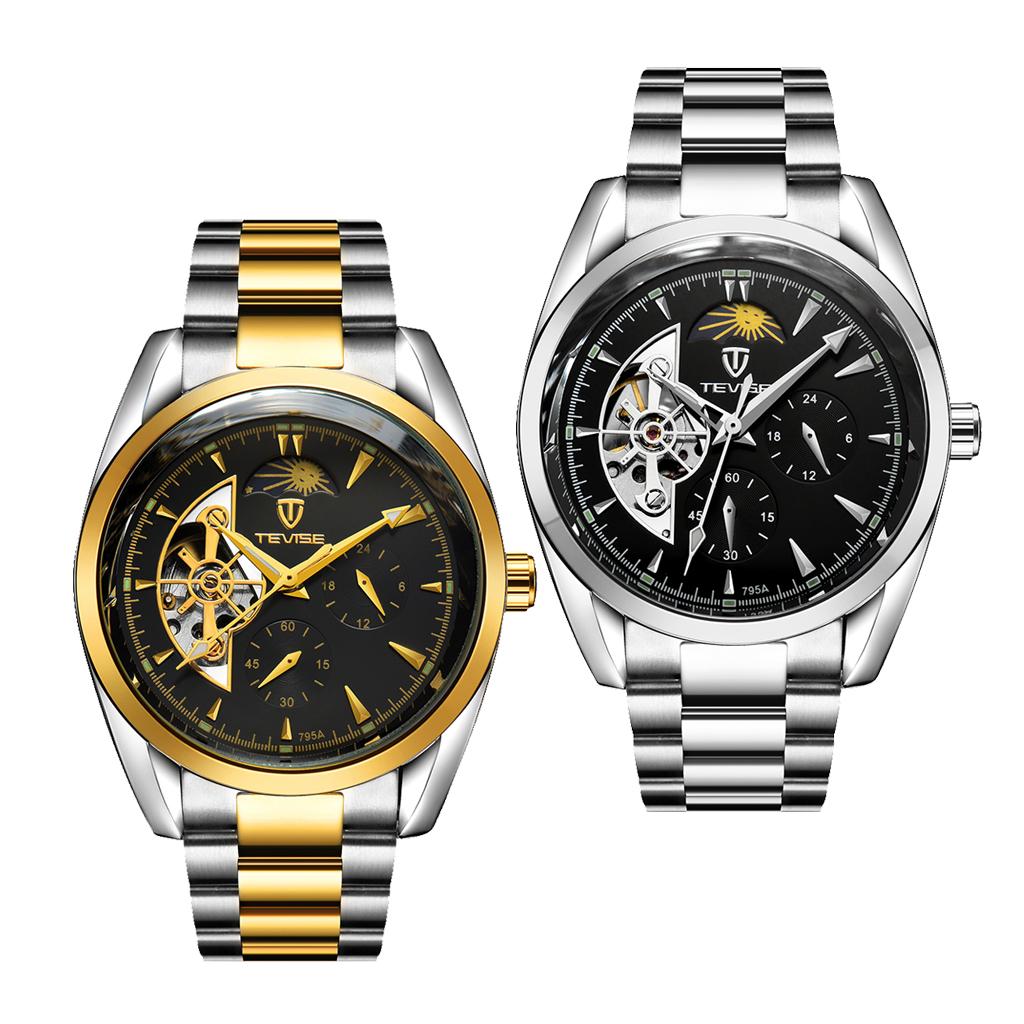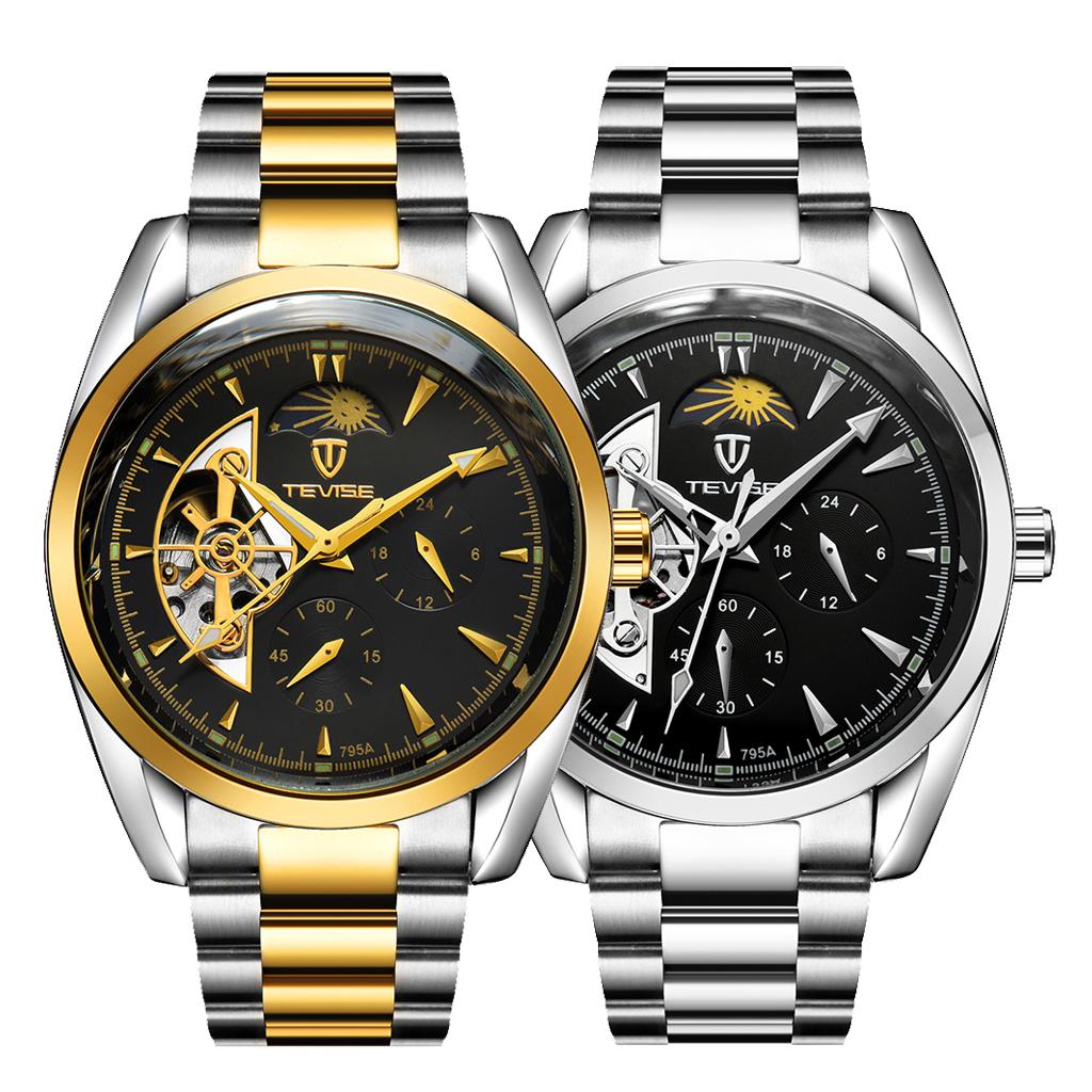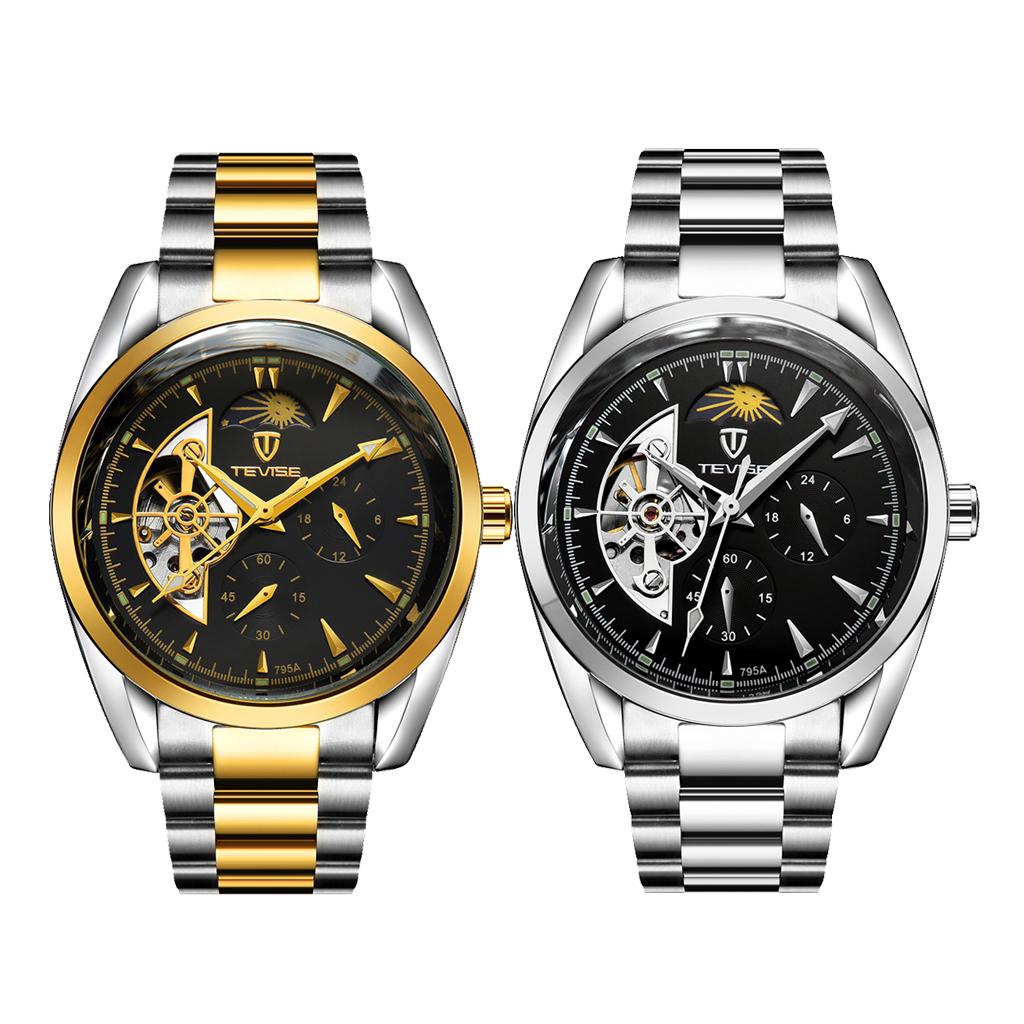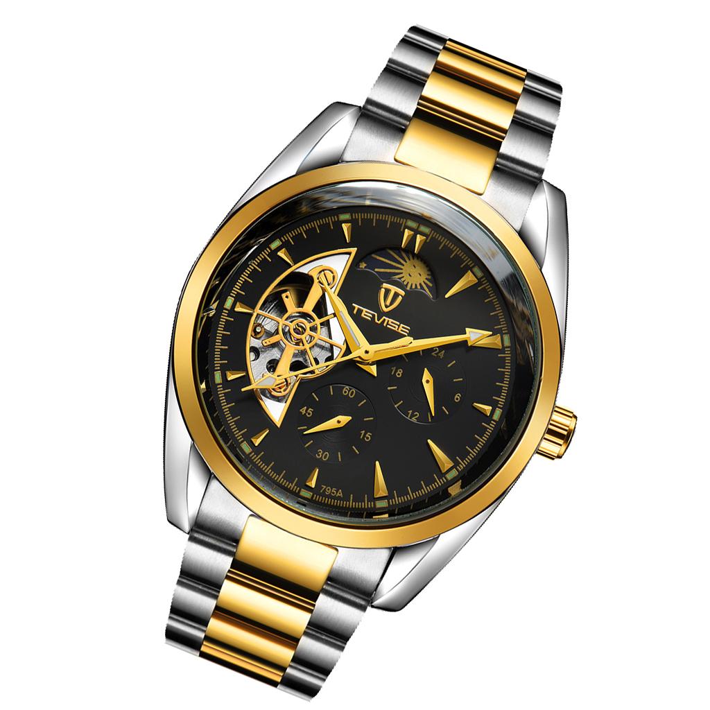 Luxury Men's Automatic Mechanical Moon Phrase Wristwatch Waterproof Gold