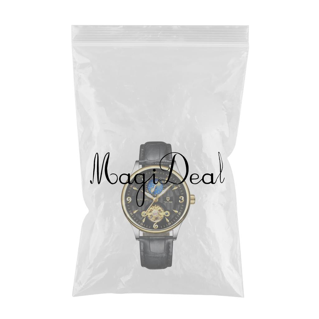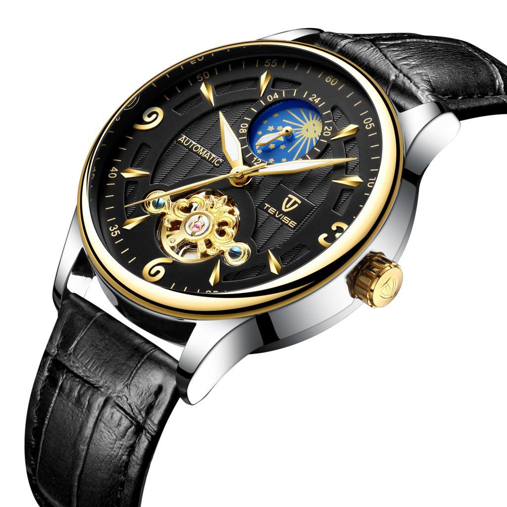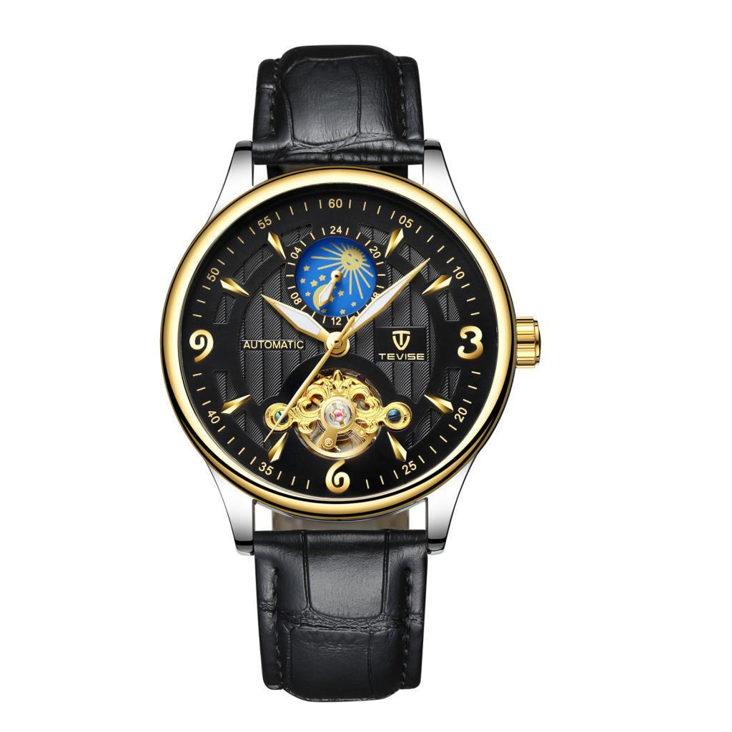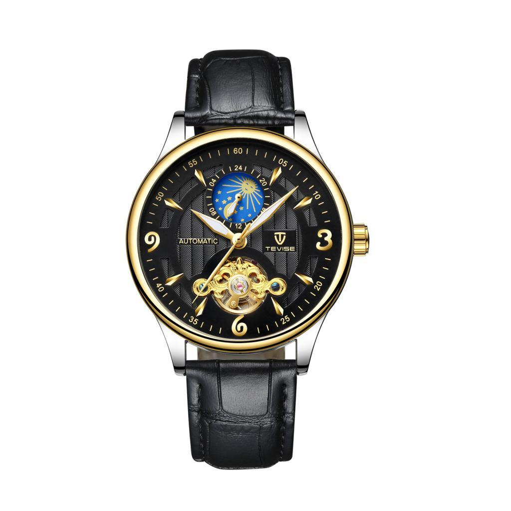 Men PU Leather Automatic Mechanical Wrist Watch Black