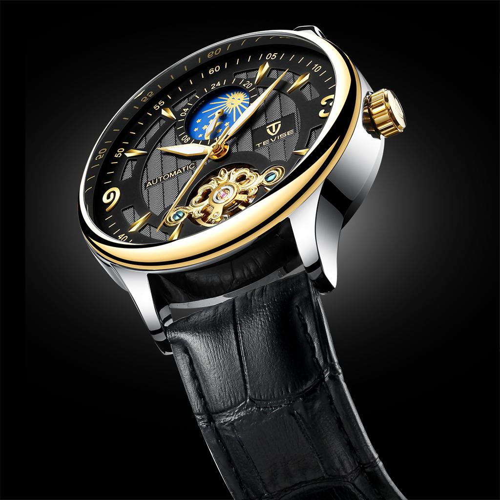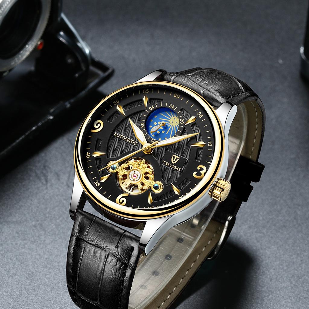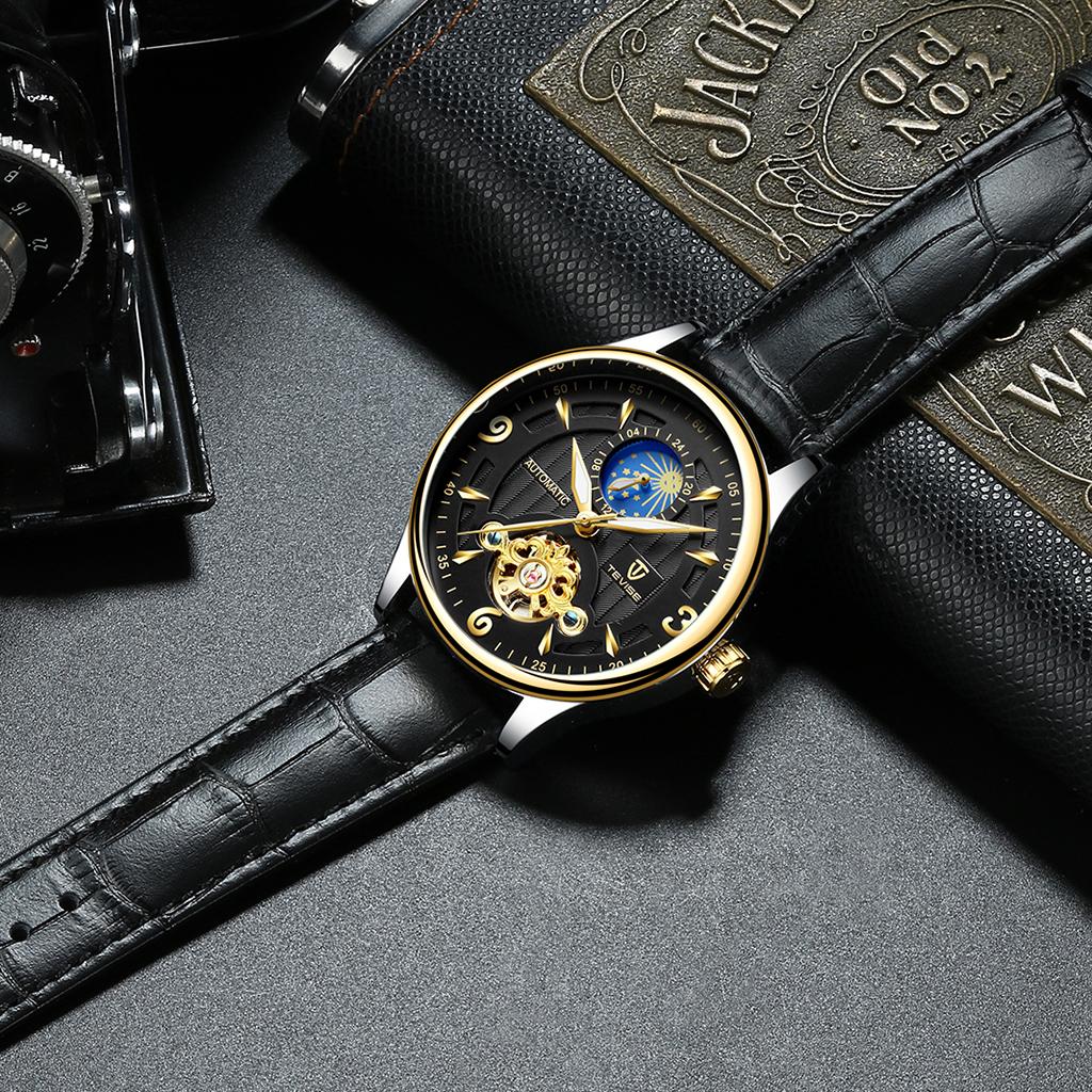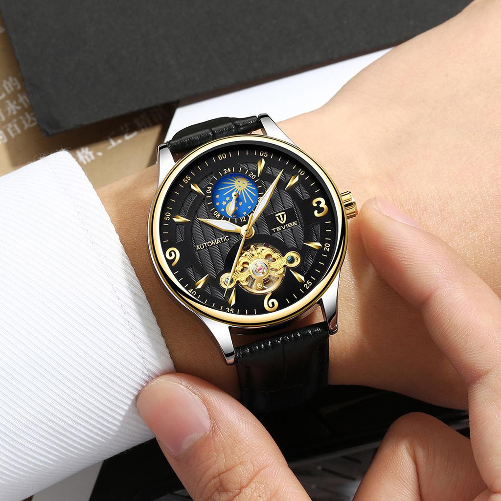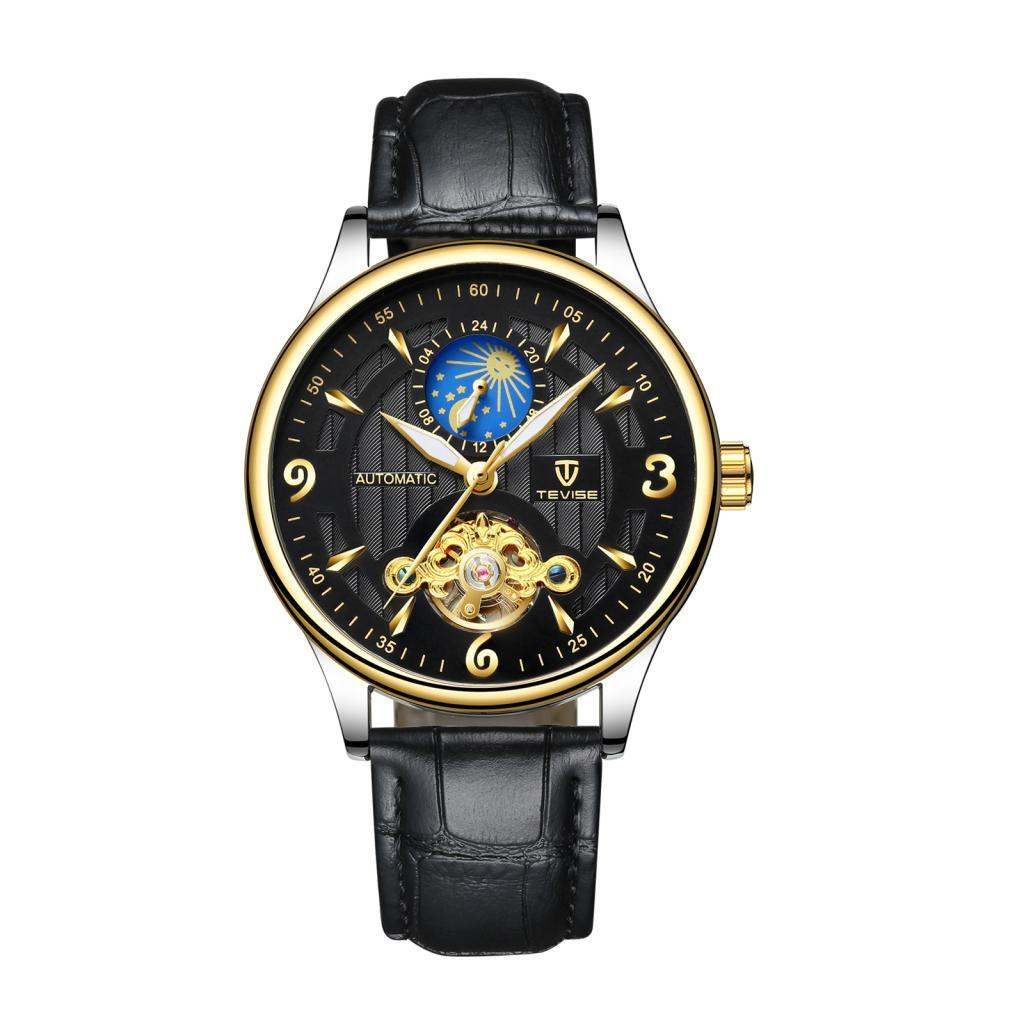 Men PU Leather Automatic Mechanical Wrist Watch Black