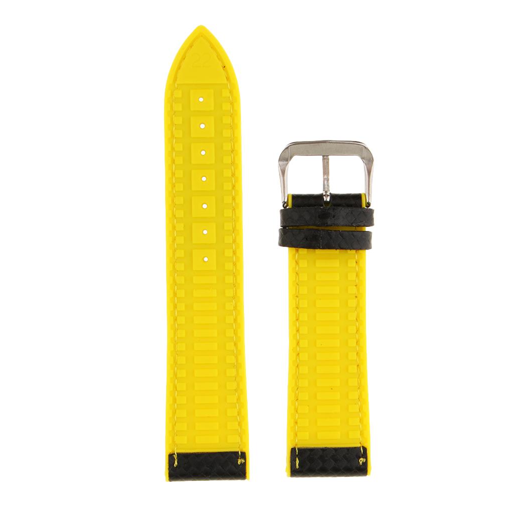 Men Textured Silicon Rubber Watch Band Replacement Strap Waterproof Yellow