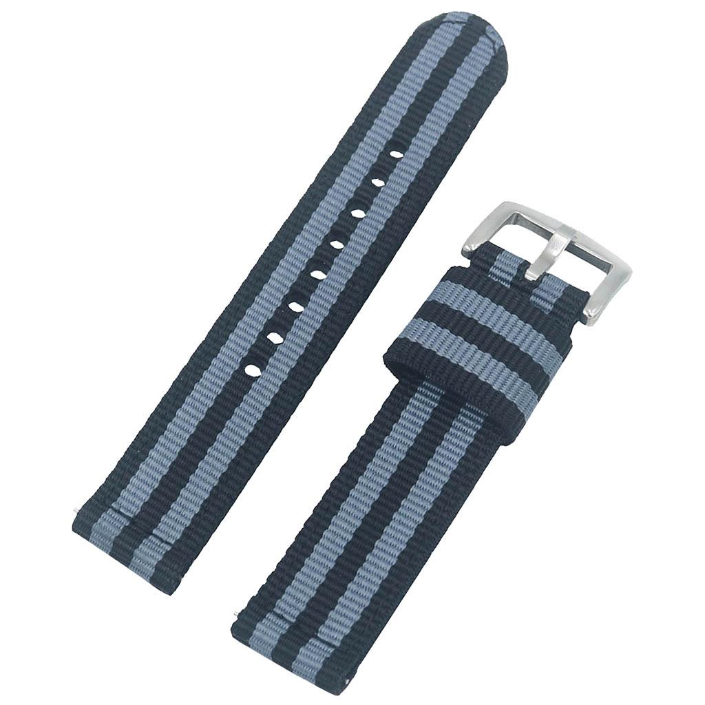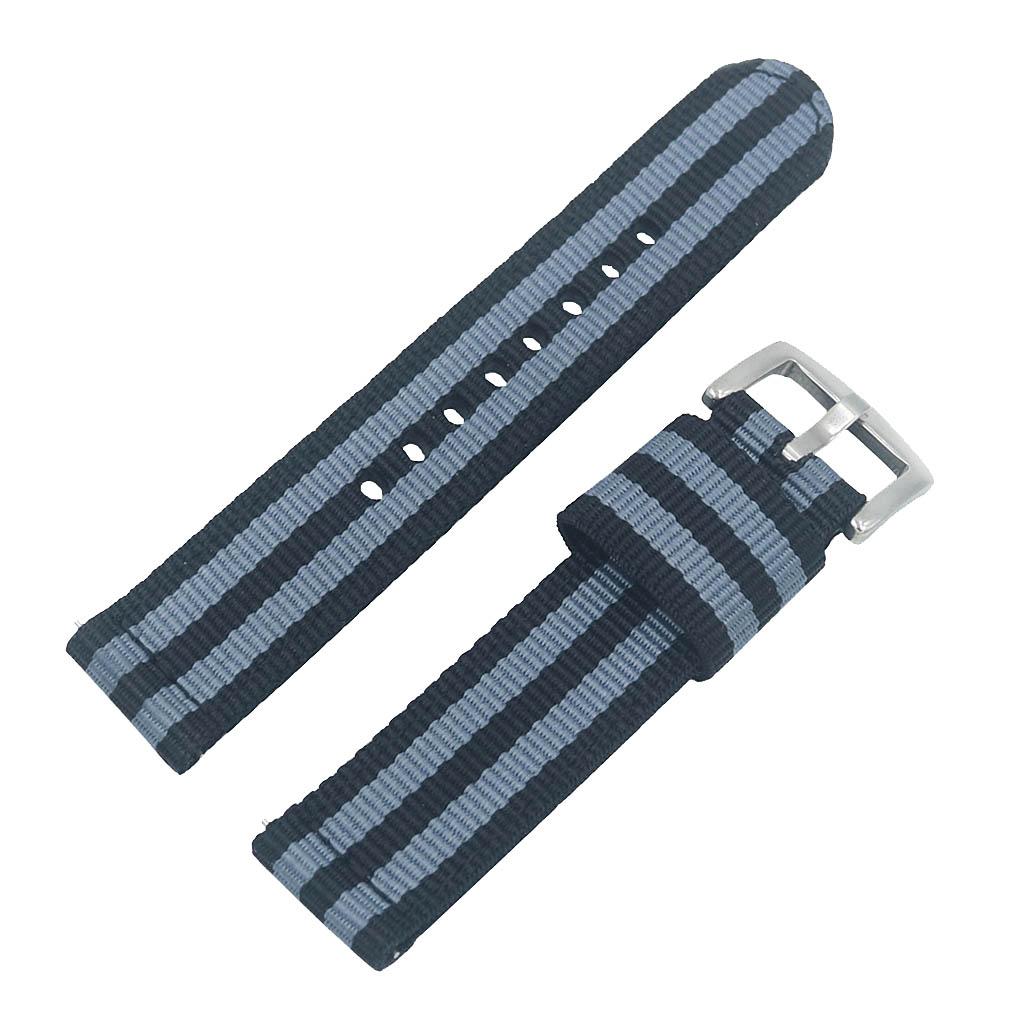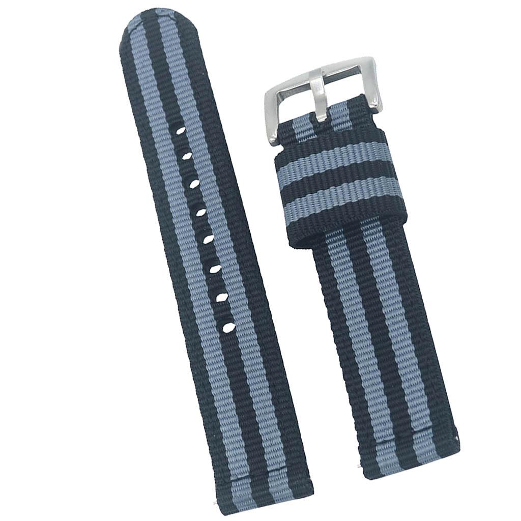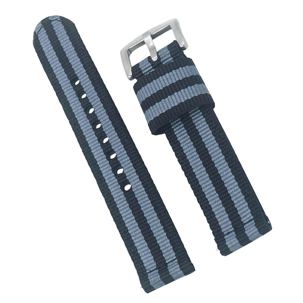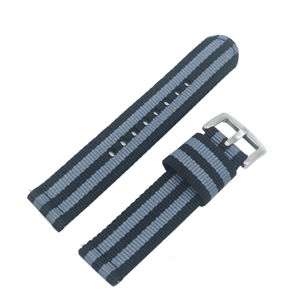 Men Women Striped Nylon Watch Band Strap Replacement Black Gray 20mm