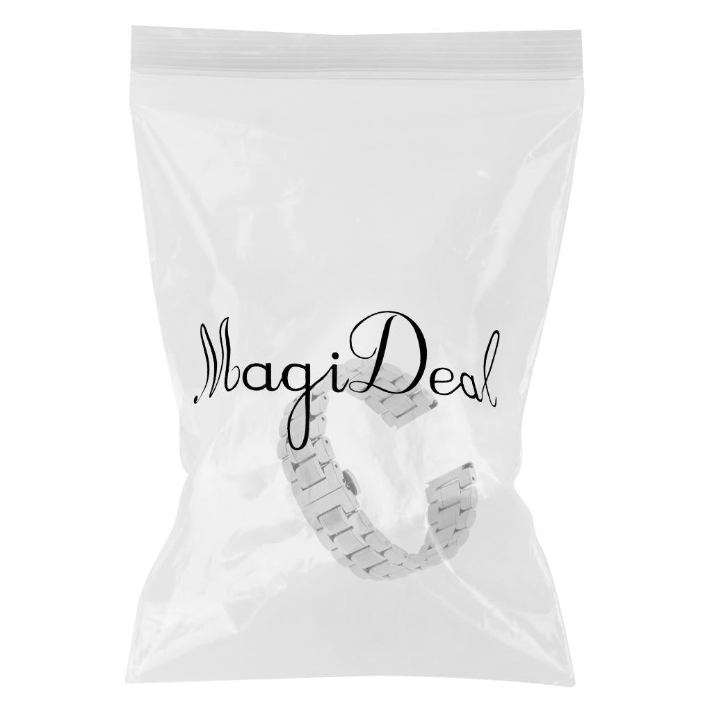 Men's Stainless Steel Watch Band Strap Bracelet Double Clasp Silver 22mm