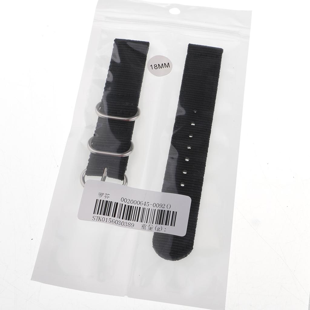 Nylon Watch Band Strap with Stainless Steel Buckle Black 18mm