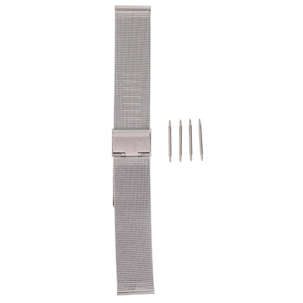 Silver Stainless Steel Wrist Watch Band Replacement Mesh Metal Strap 20mm