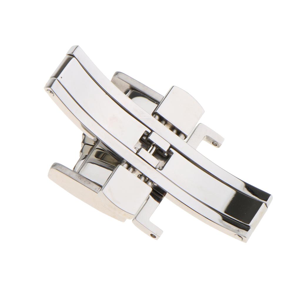 Silver Stainless Steel Deployment Clasp With Push Button.