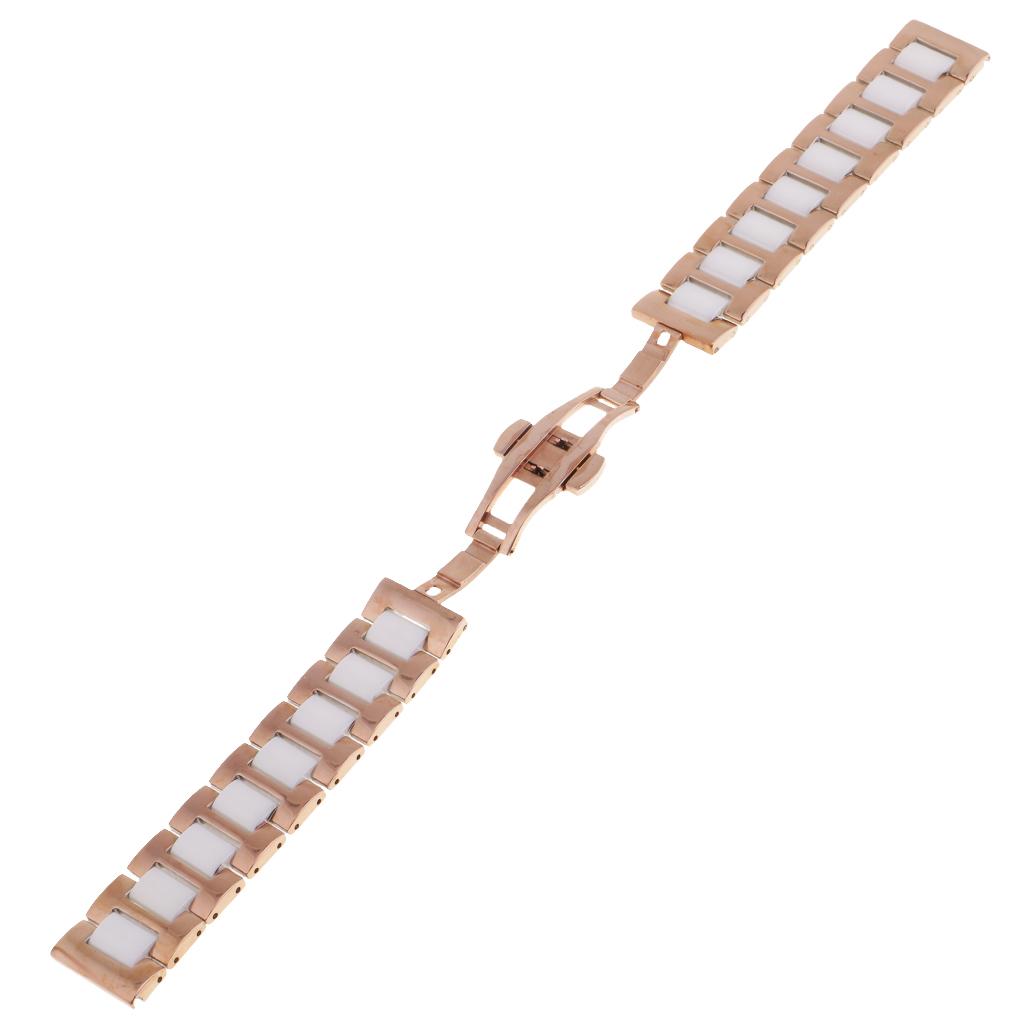 Stainless Steel Ceramic Links Watch Band Strap with Butterfly Buckle Clasp 3