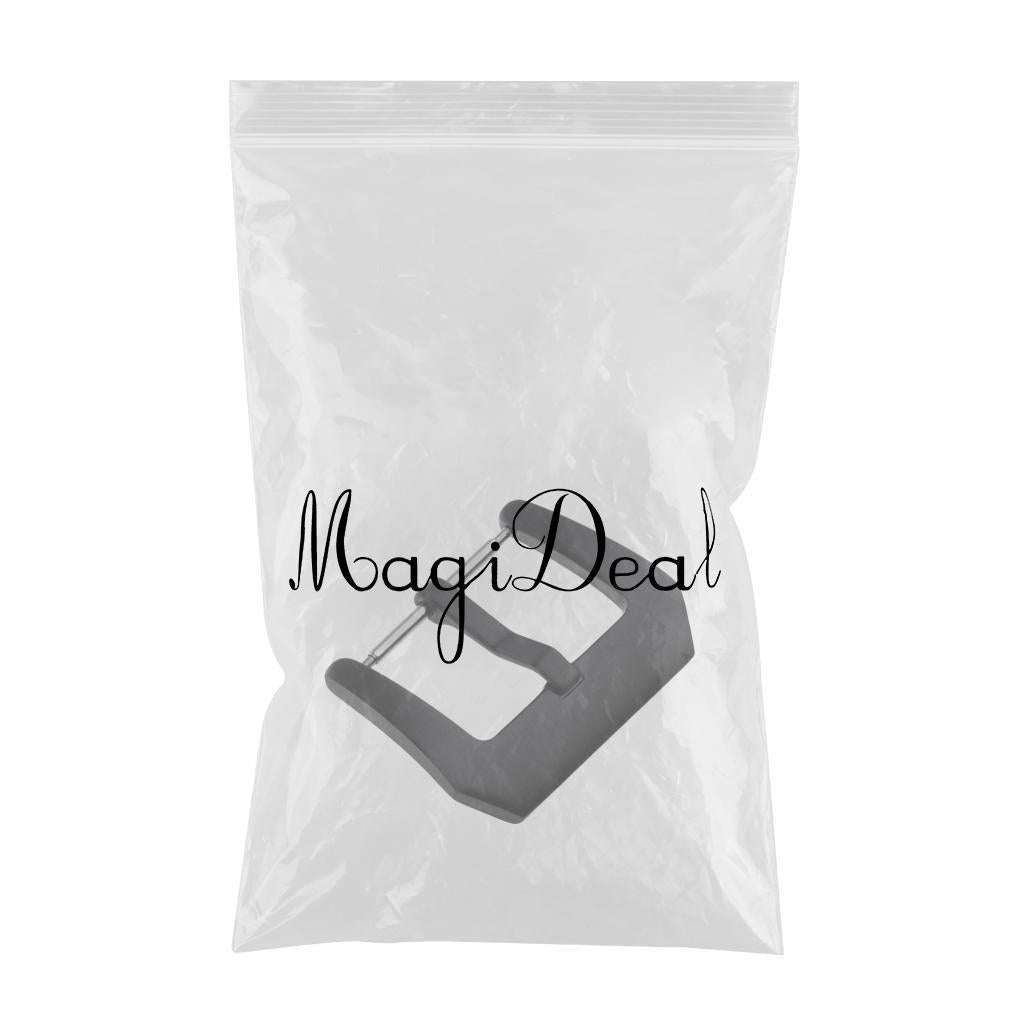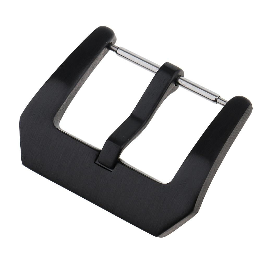 Stainless Steel Screw-in Buckle Watch Band Strap Brushed Clasp Black 20mm
