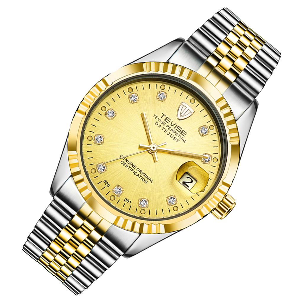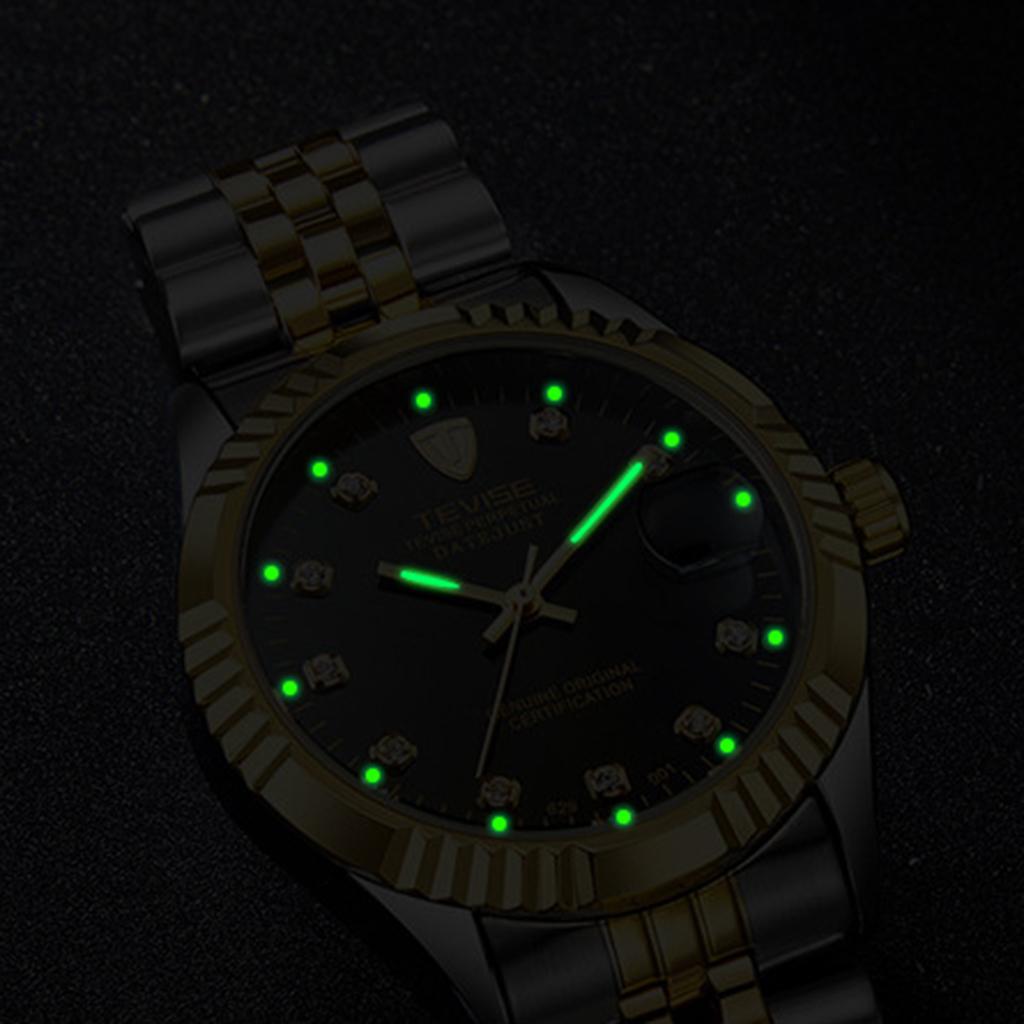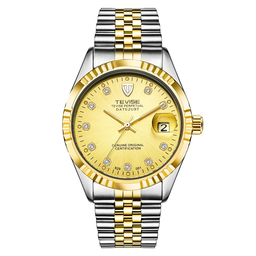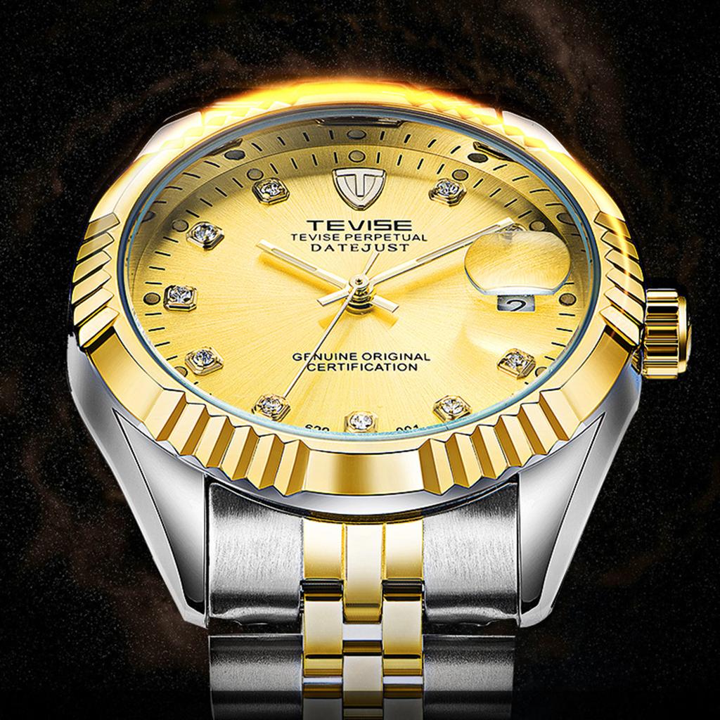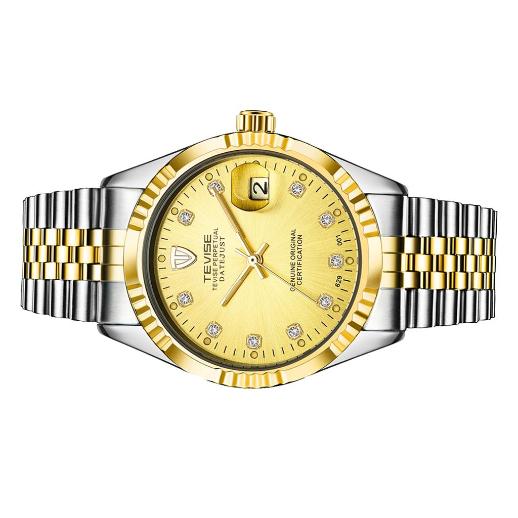 Tevise Stainless Steel Mechanical Automatic Waterproof Watch Gold