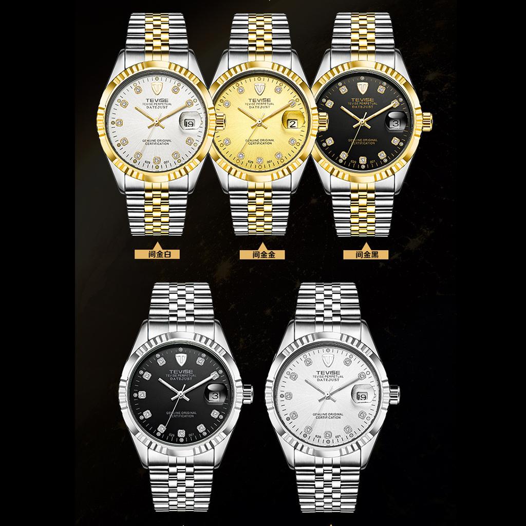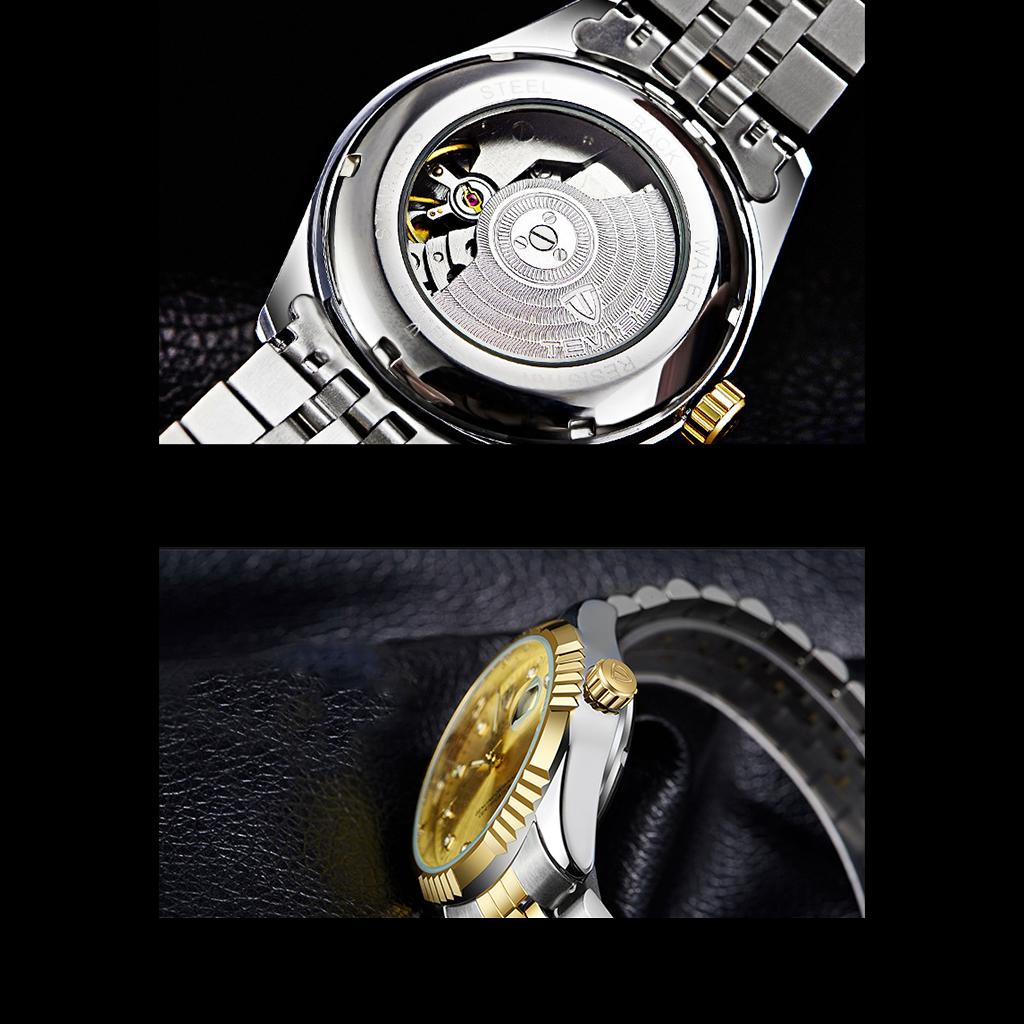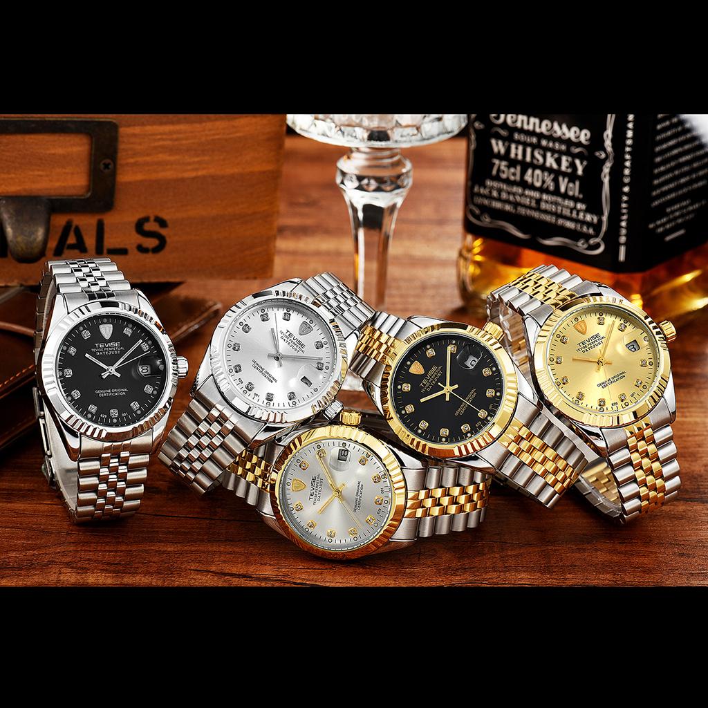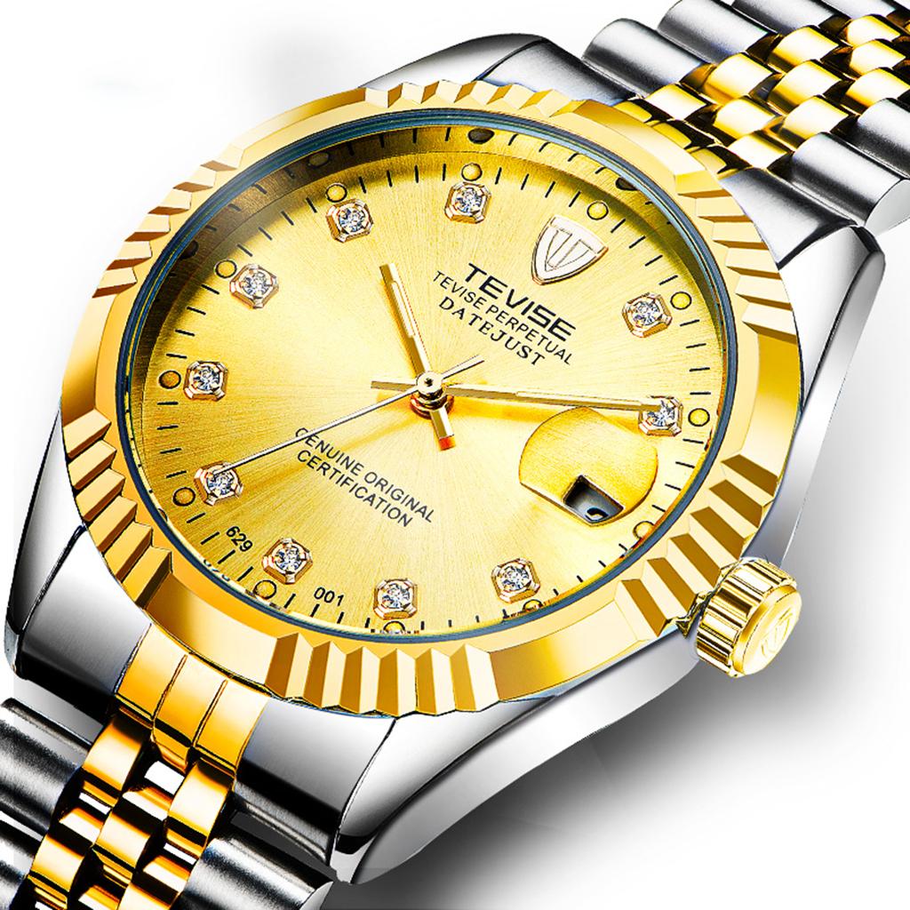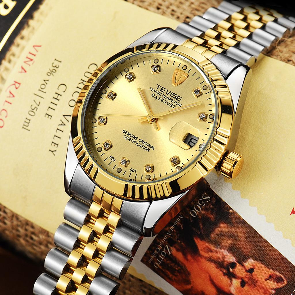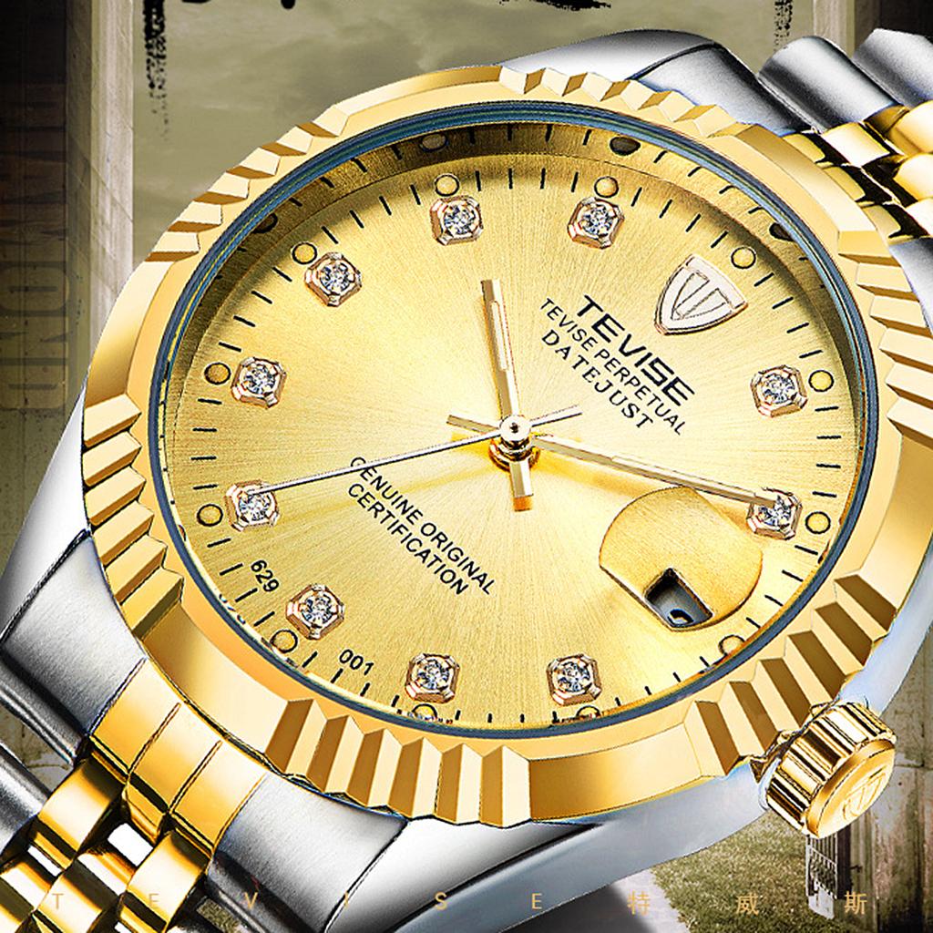 Tevise Stainless Steel Mechanical Automatic Waterproof Watch Gold
