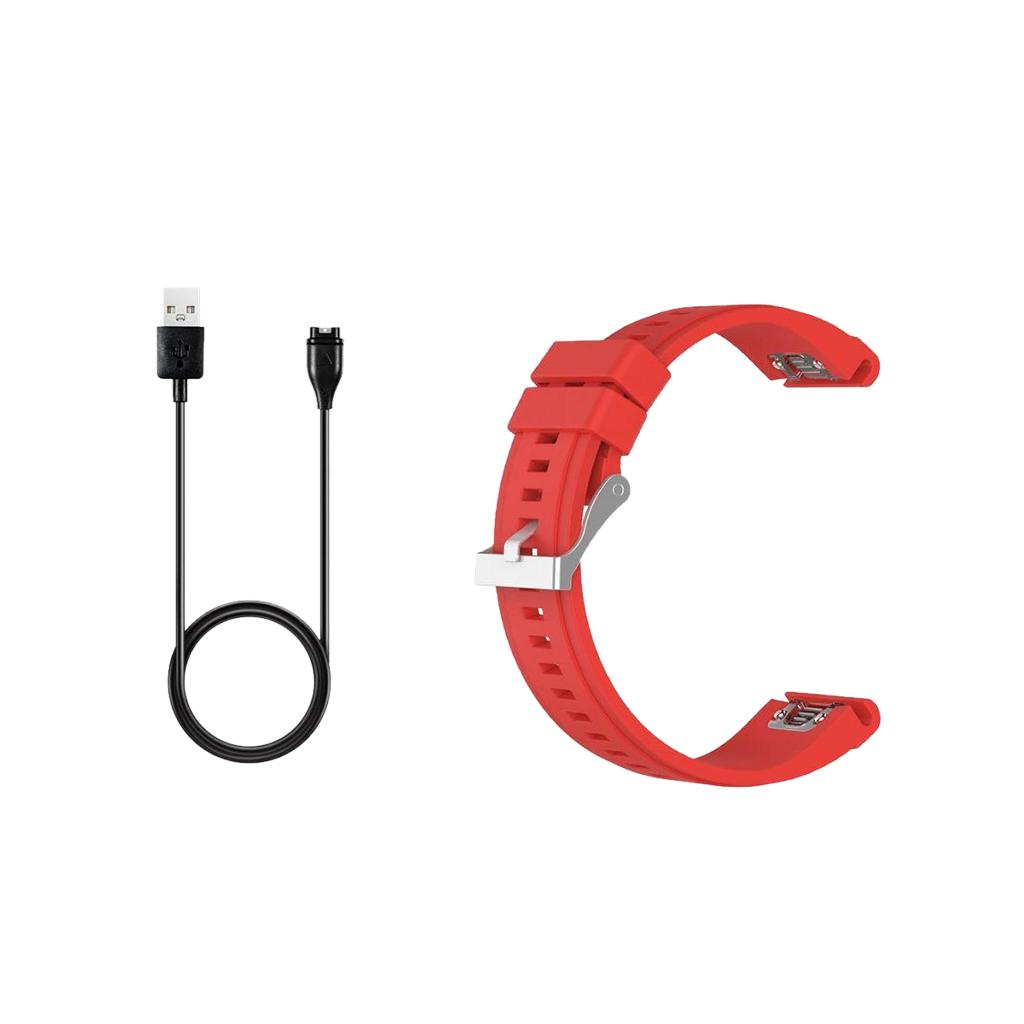 USB Charging Data Sync Cable + Silicone Wrist Band Strap for Garmin Fenix 5x
