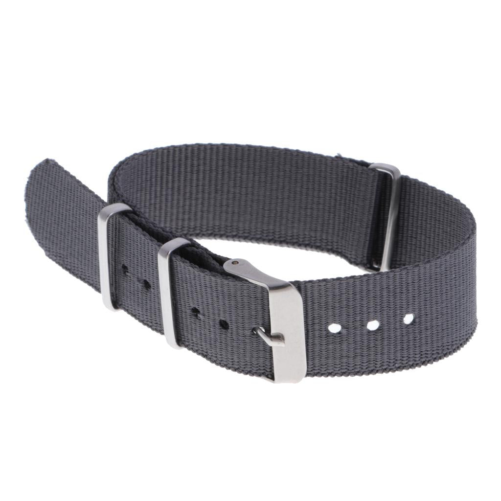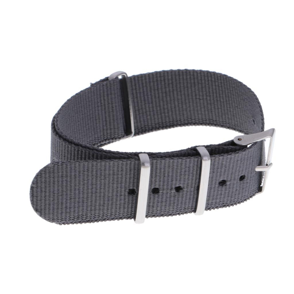 Woven Nylon Watch Strap Wristwatch Band Stainless Steel Buckle Gray 20mm