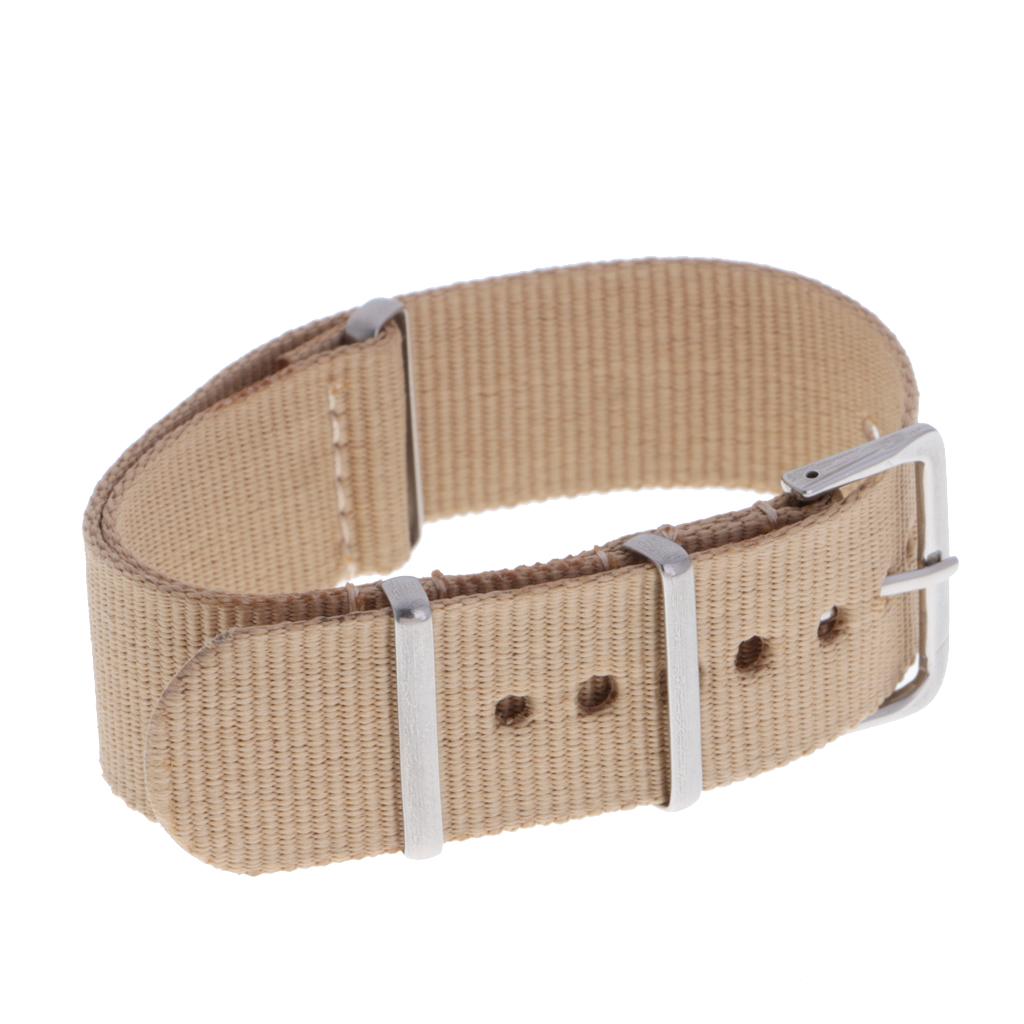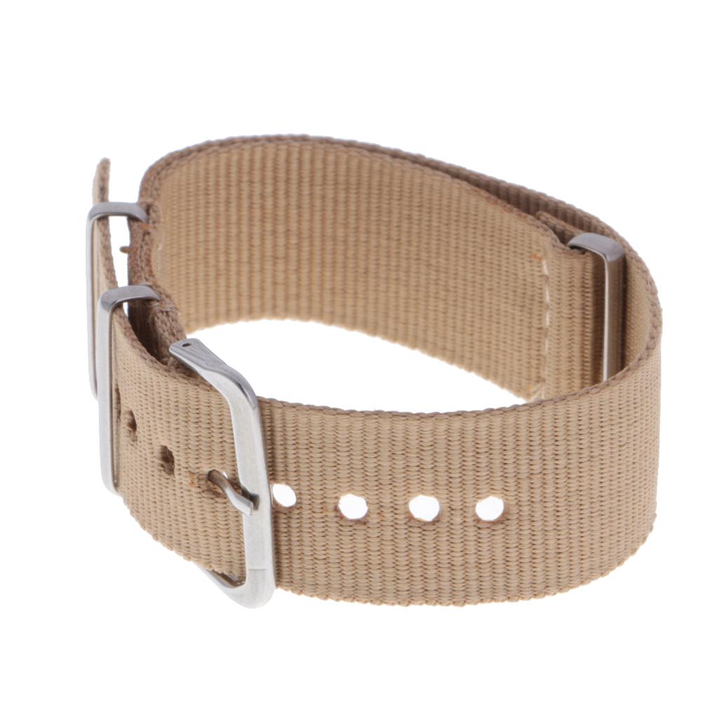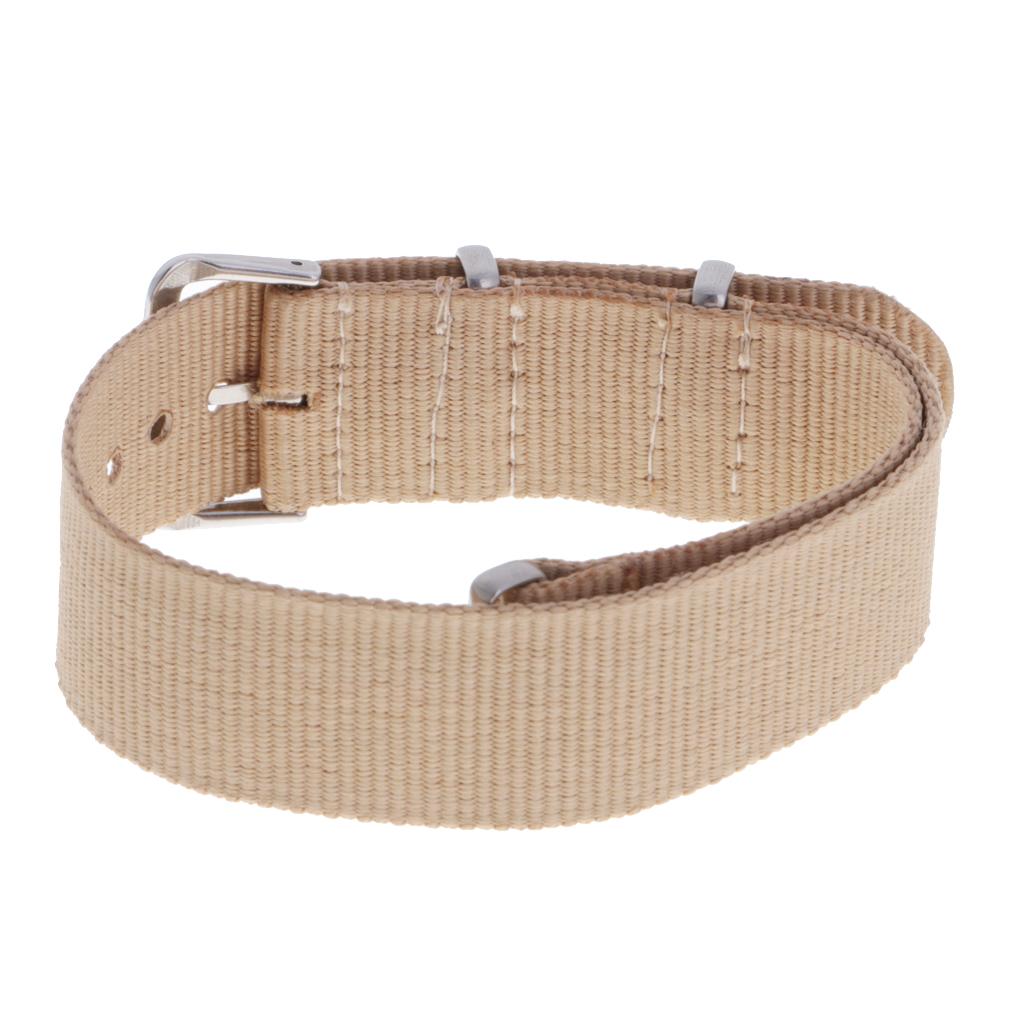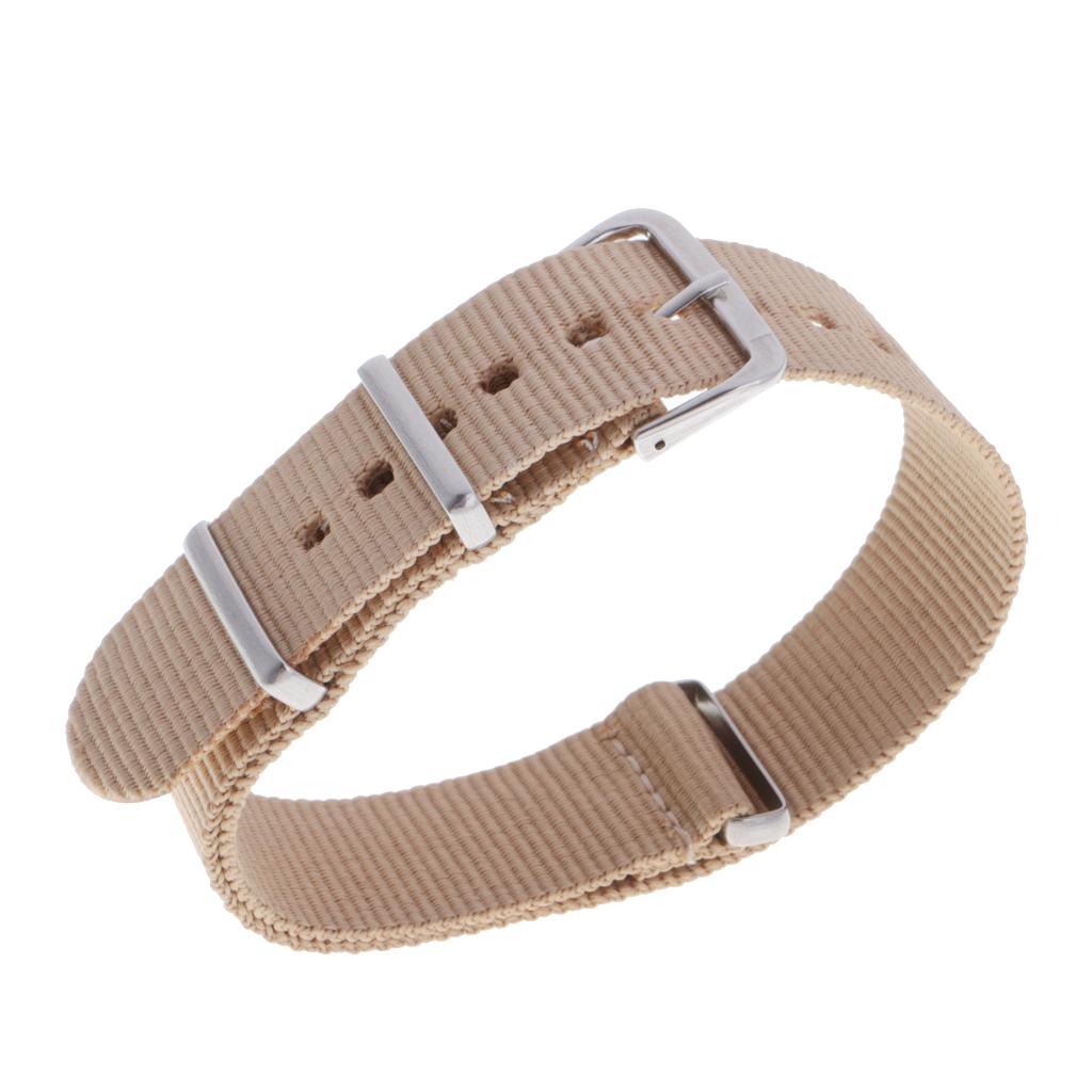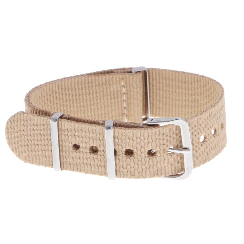 Woven Nylon Watch Strap Wristwatch Band Stainless Steel Buckle Khaki 18mm