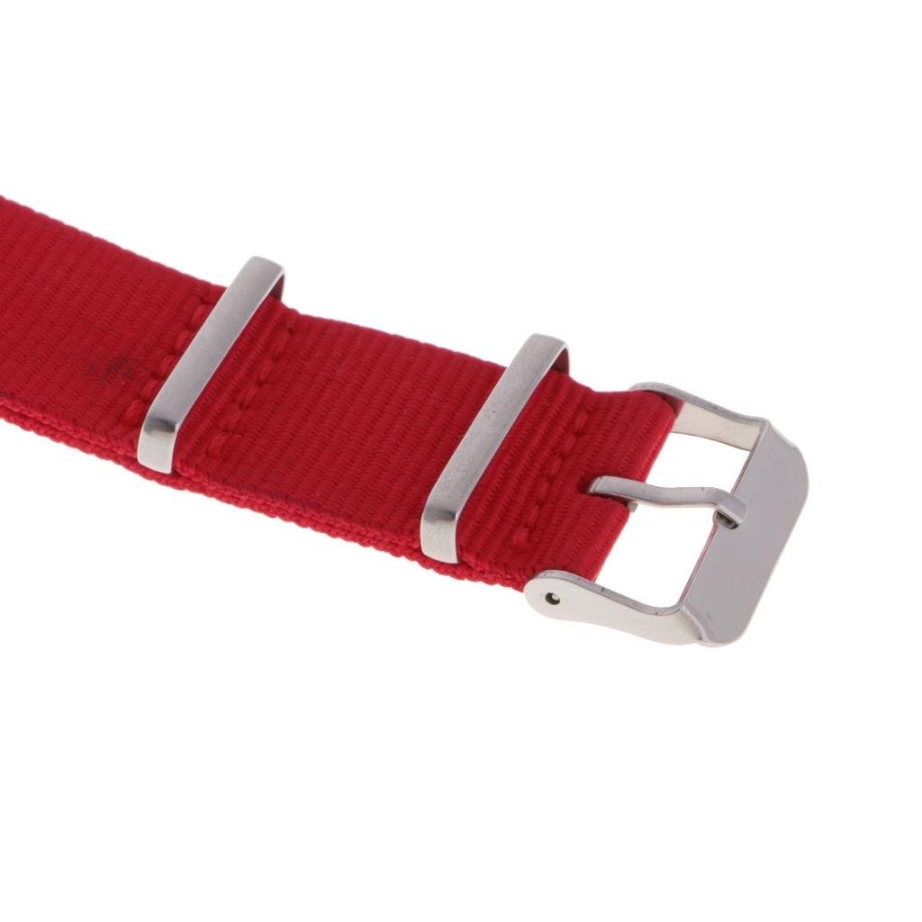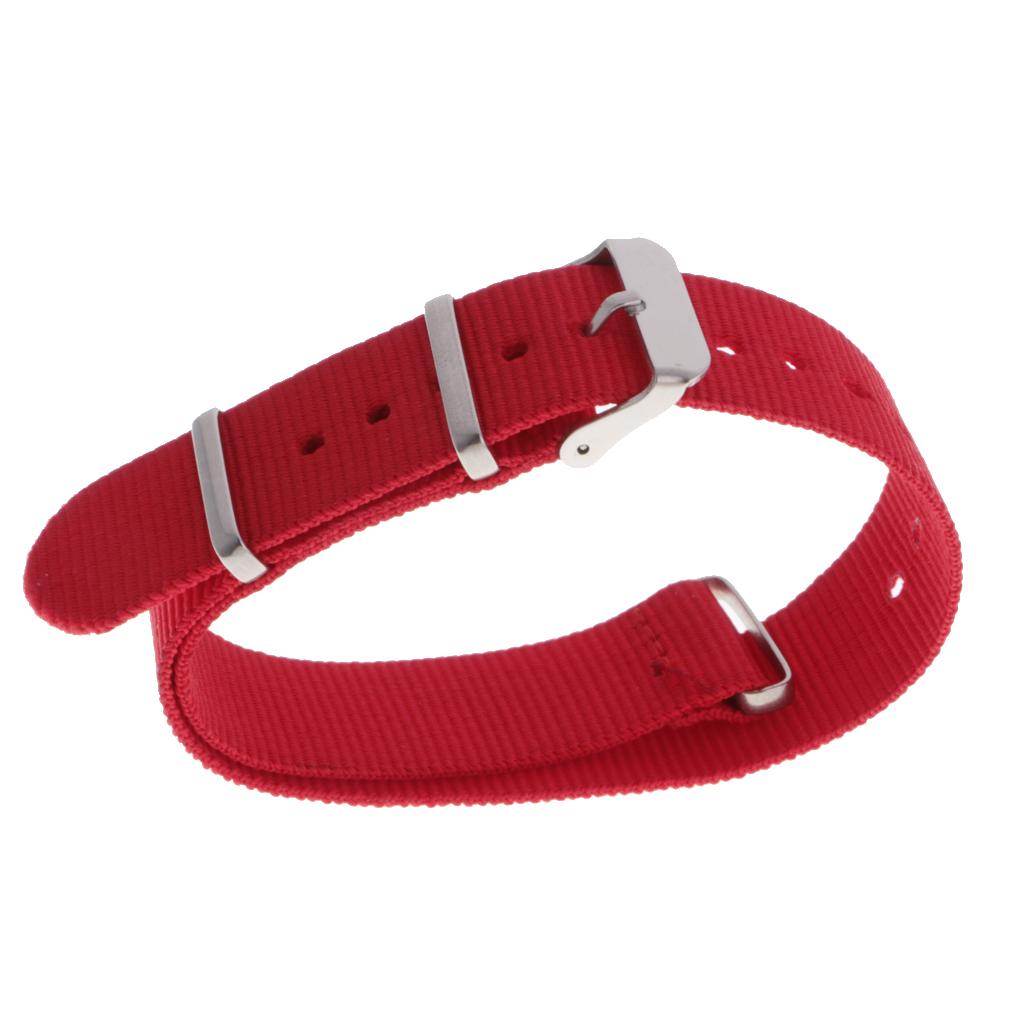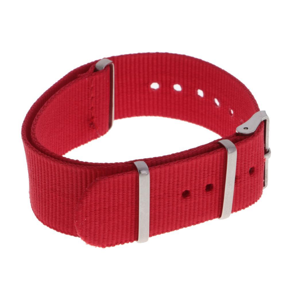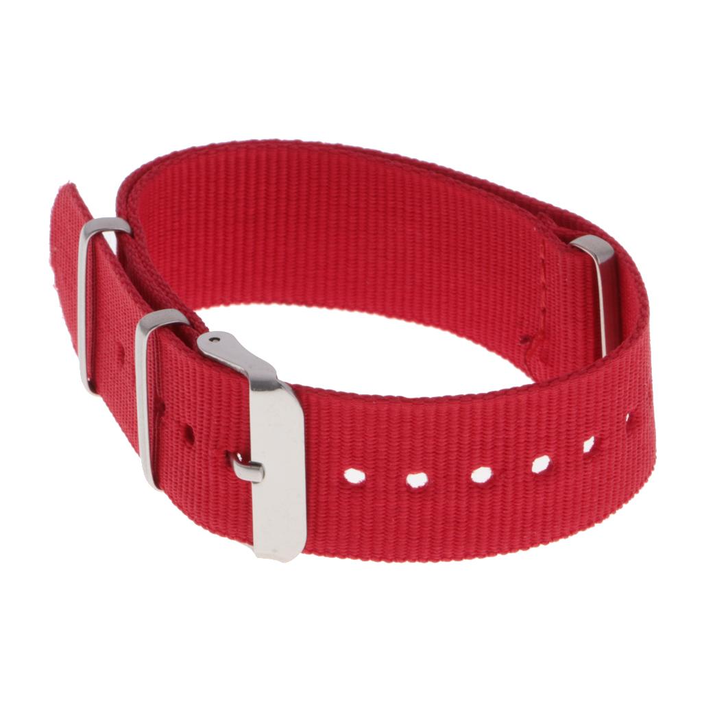 Woven Nylon Watch Strap Wristwatch Band Stainless Steel Buckle Red 20mm