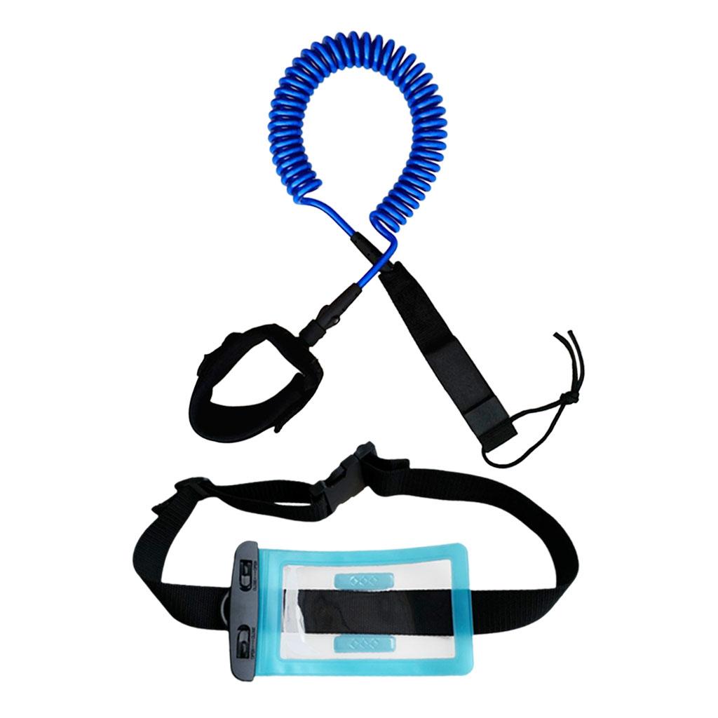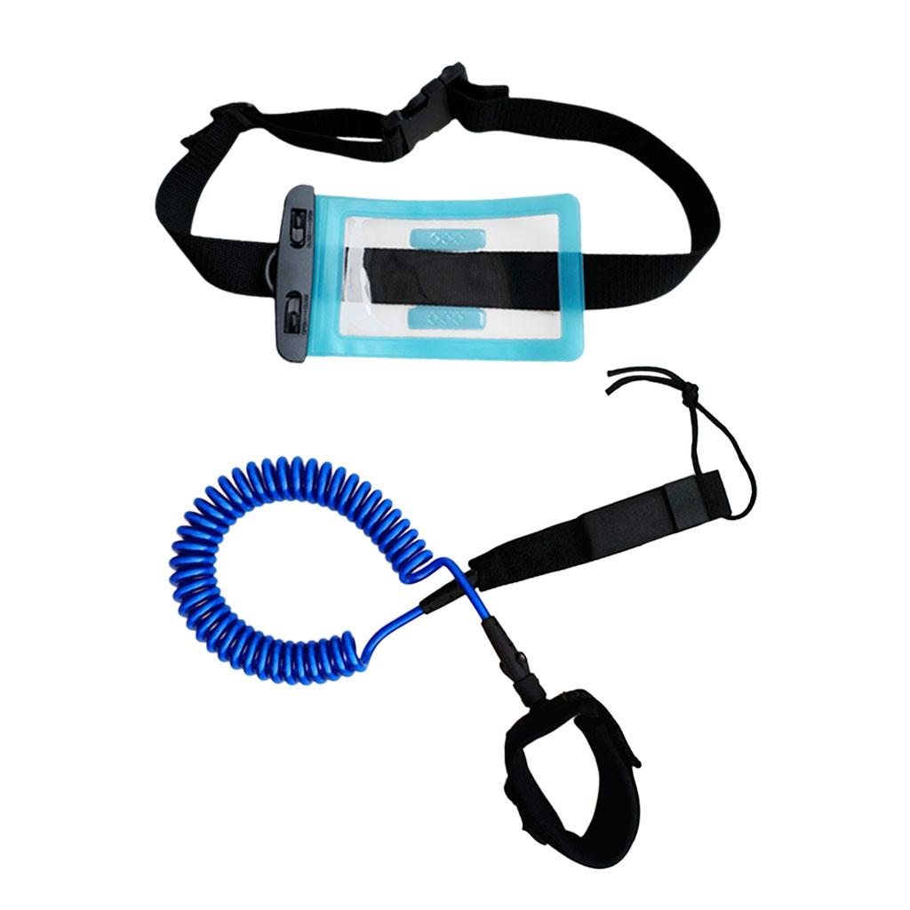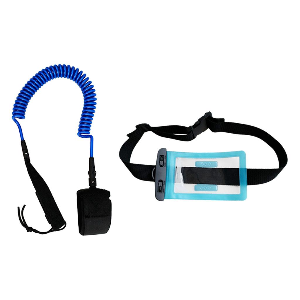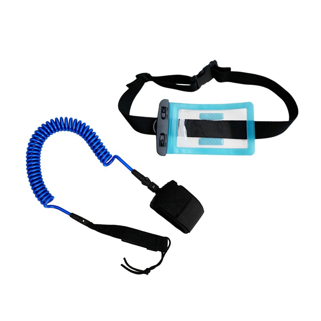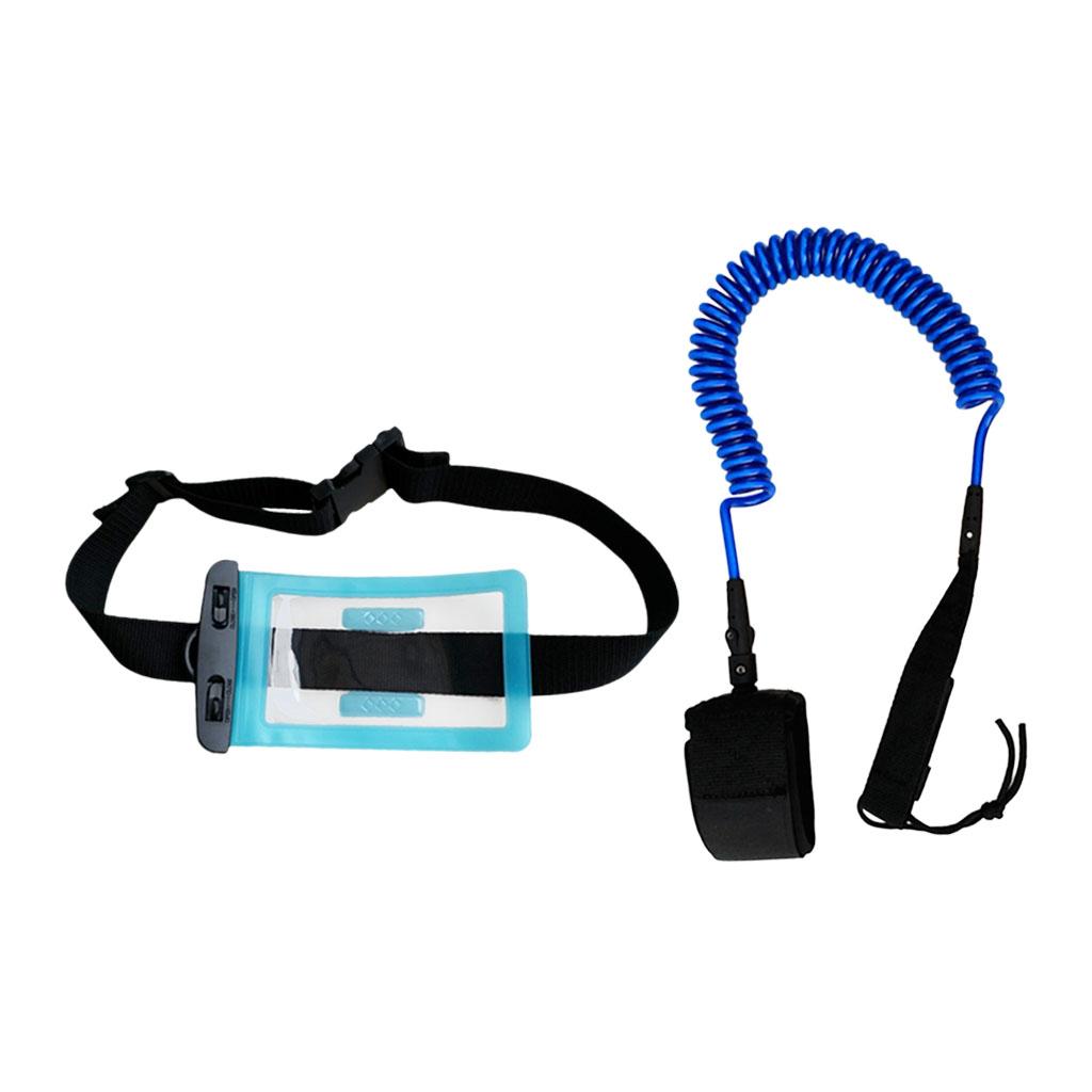 10ft Coiled SUP Leash Leg Rope with Waterproof Wallet Dry Bag Blue