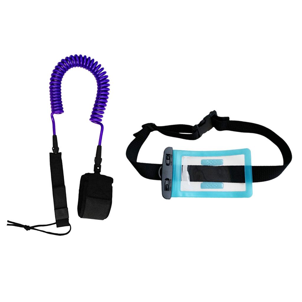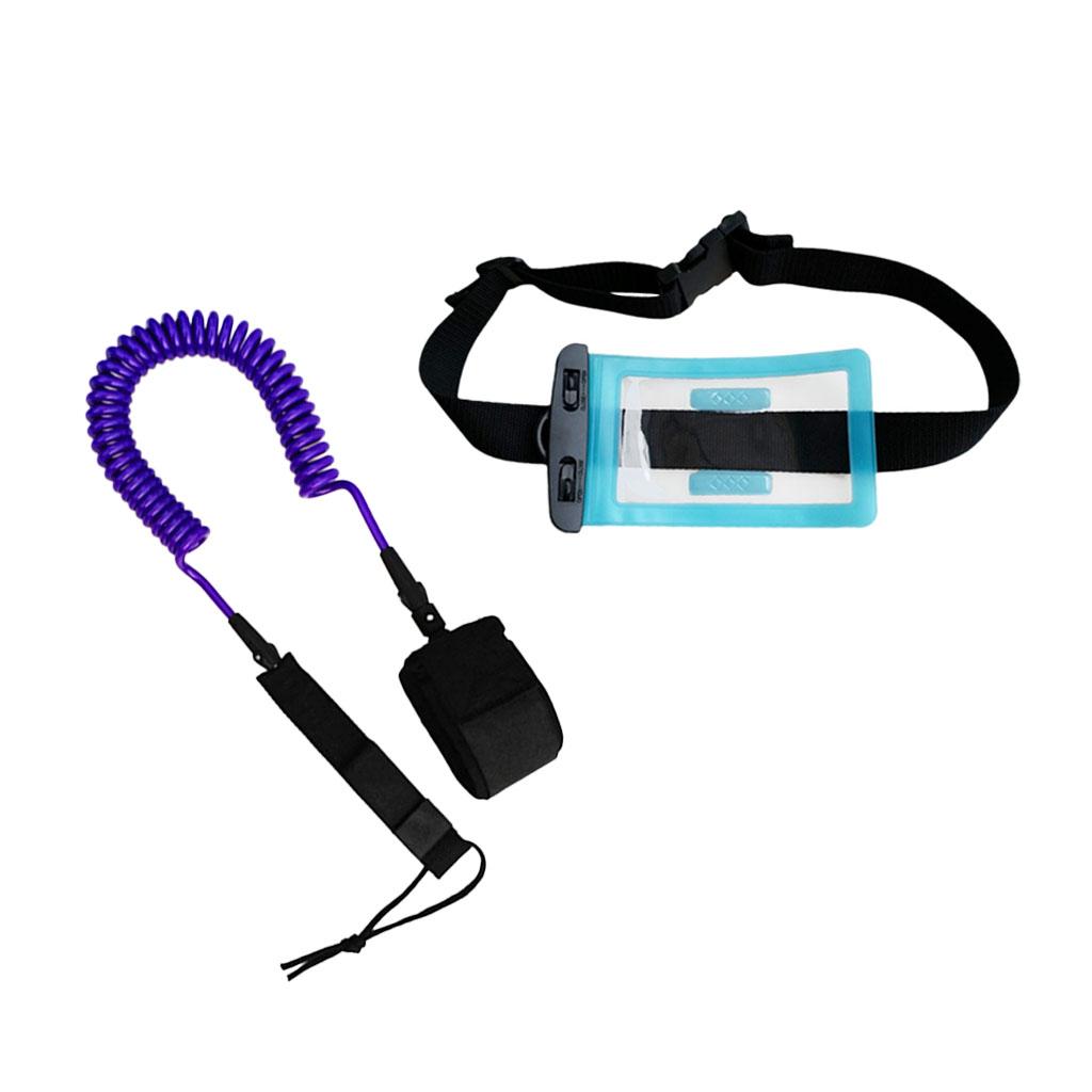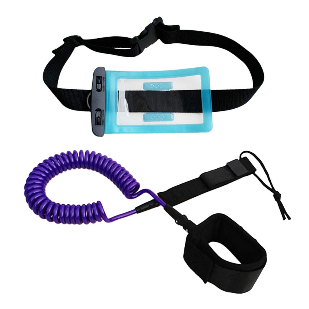 10ft Coiled SUP Leash Leg Rope with Waterproof Wallet Dry Bag Purple