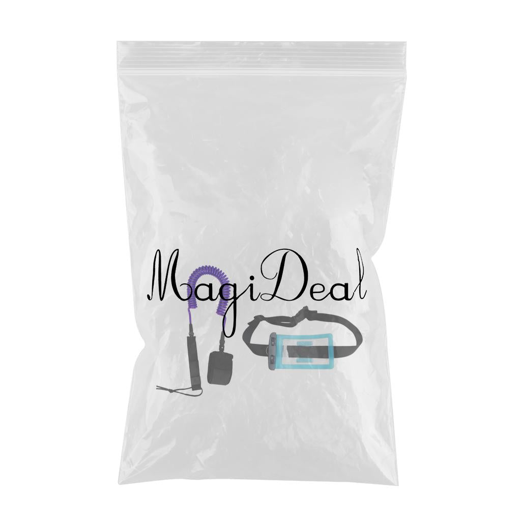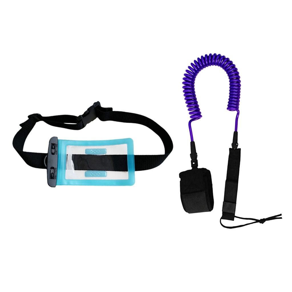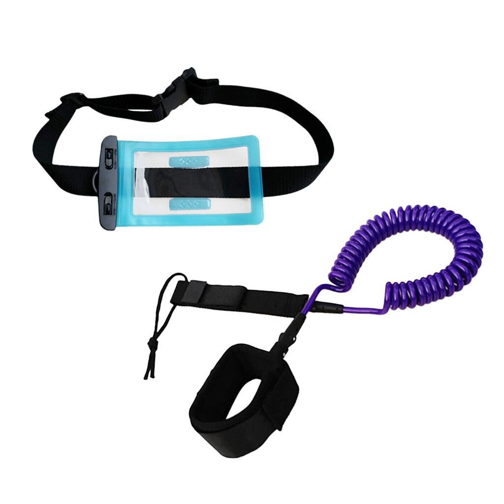 10ft Coiled SUP Leash Leg Rope with Waterproof Wallet Dry Bag Purple
