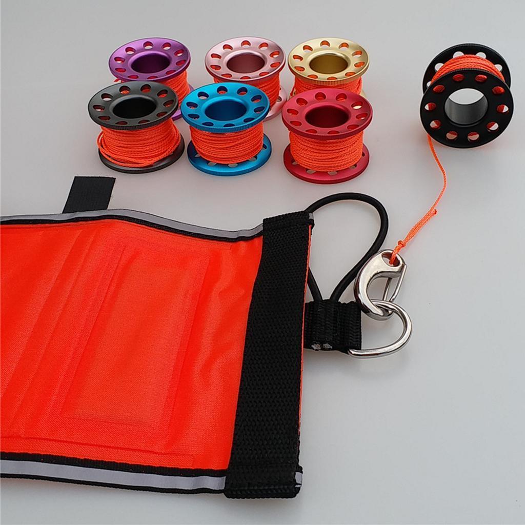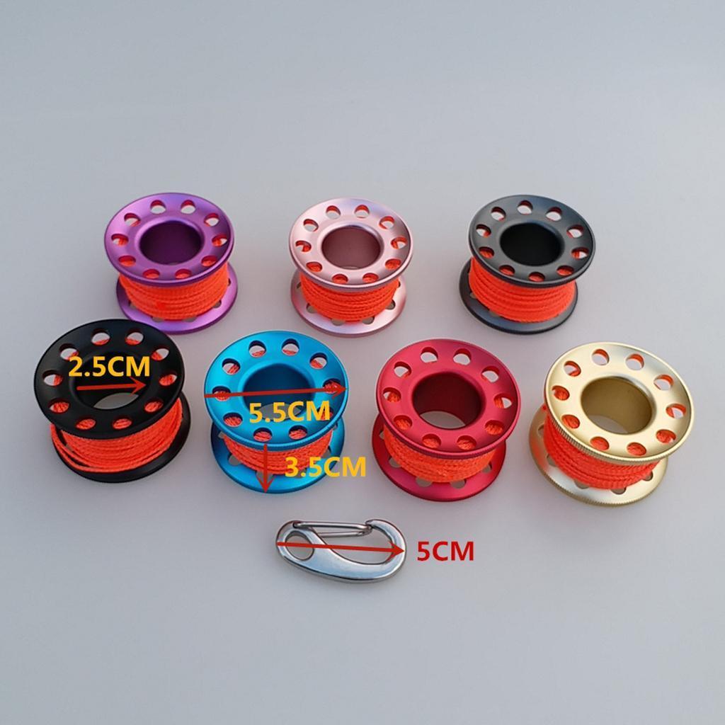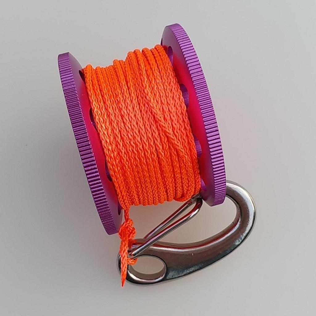 Scuba diving plastic compact finger spool reel with 10m high visibility line.