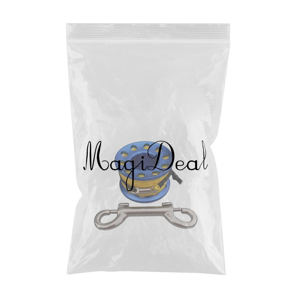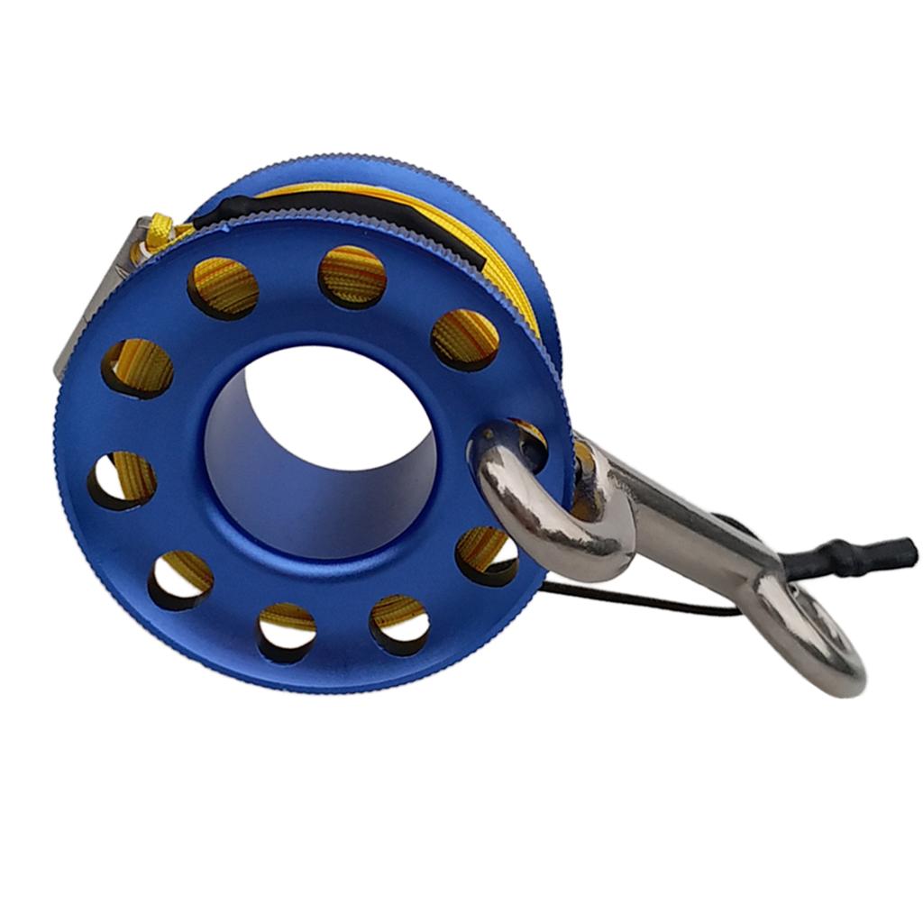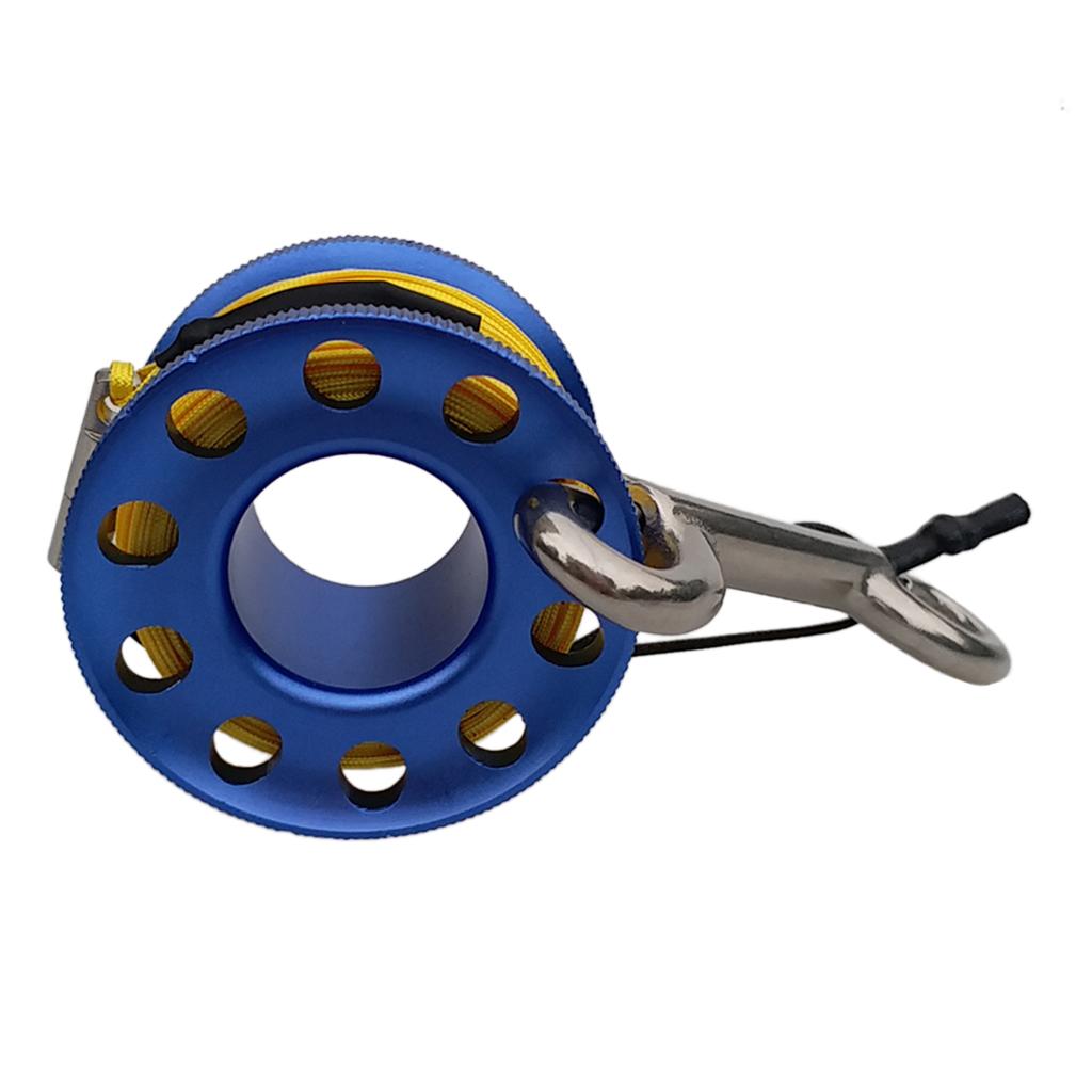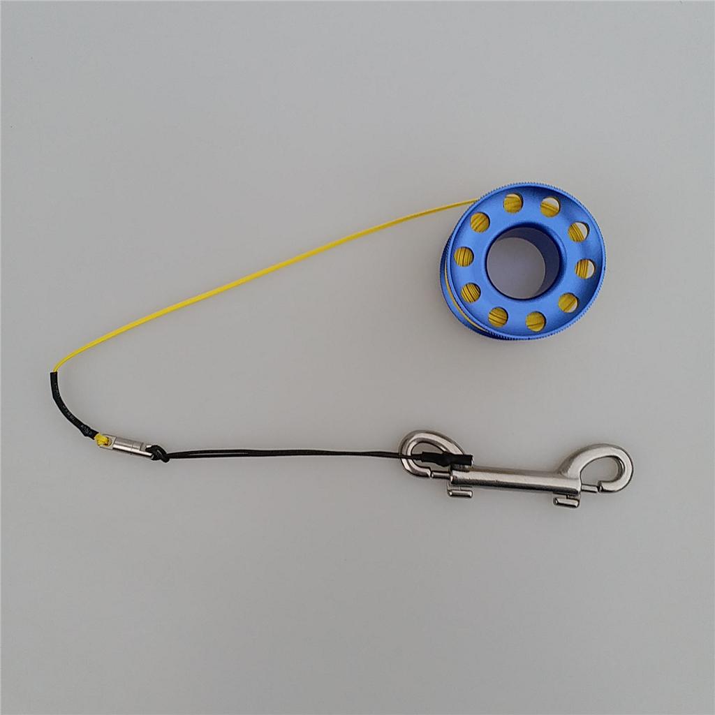 Professional scuba diving plastic finger spool reel with 15m/49ft high visibility wear-resistant line.