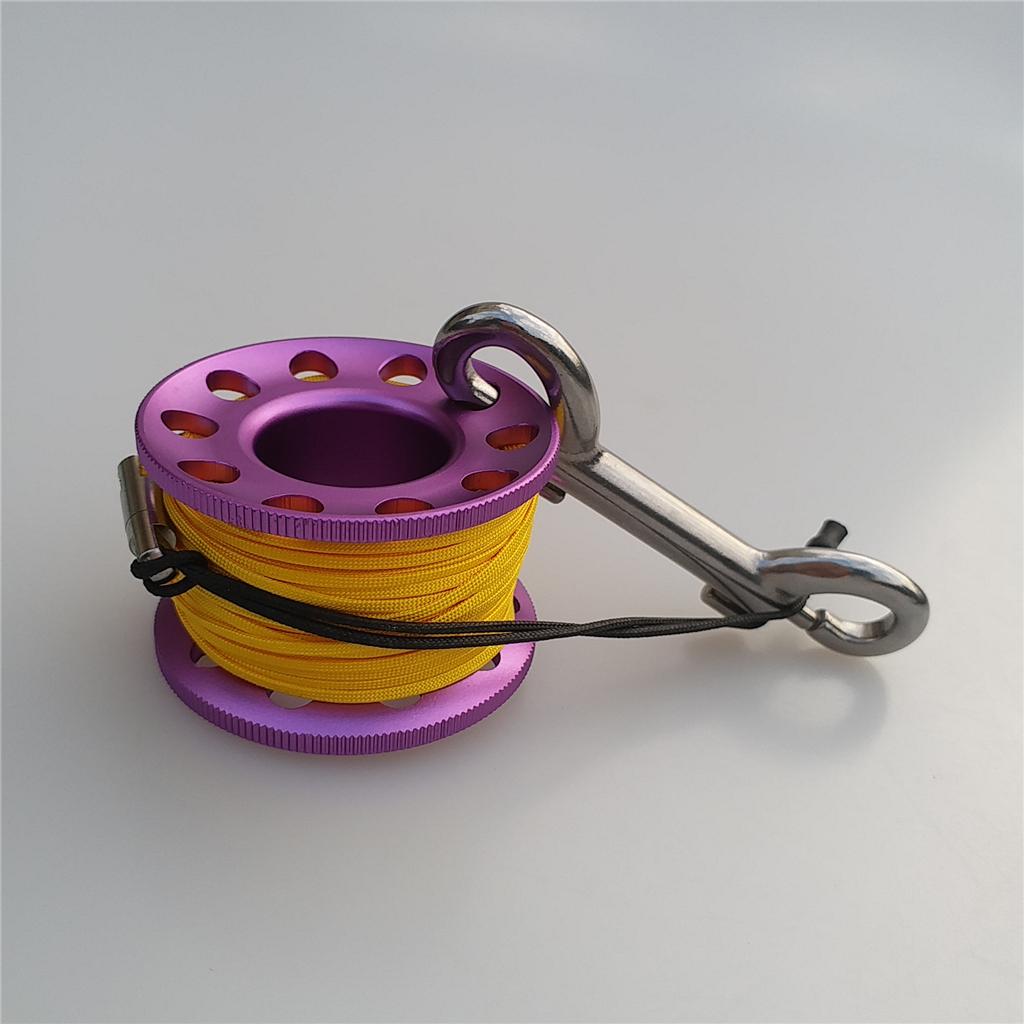 Professional scuba diving plastic finger spool reel with 15m/49ft high visibility wear-resistant line.