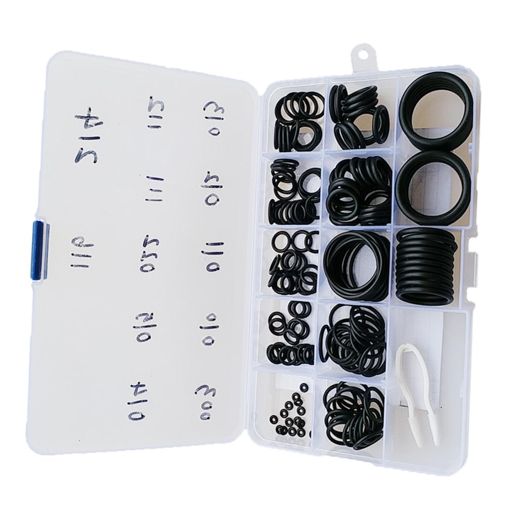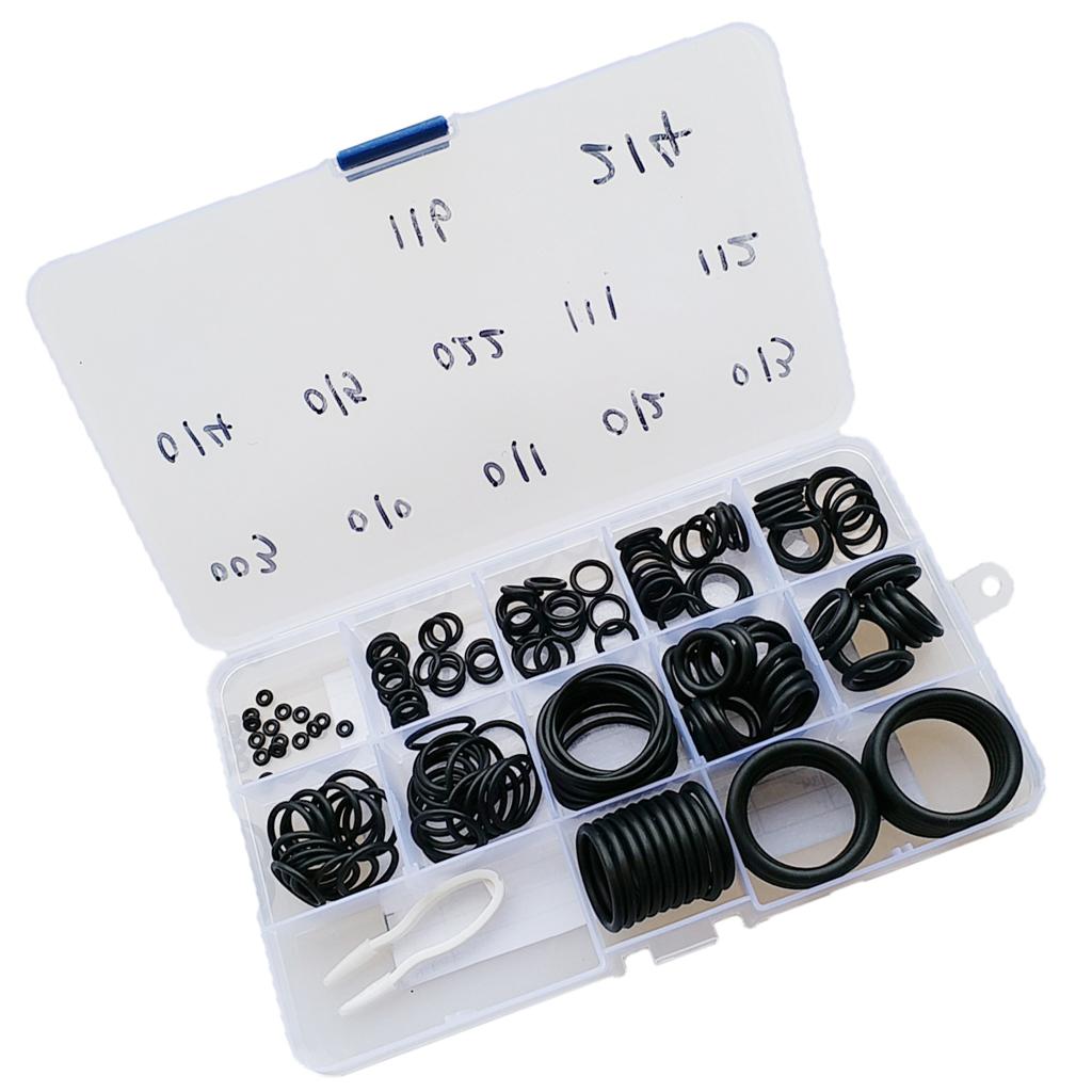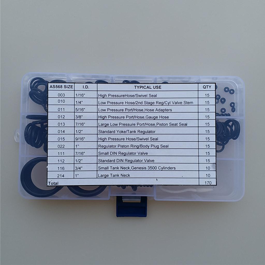 170 Pieces premium rubber various standard size scuba diving O ring kit in a plastic box, lightweight, wear-resistant, durable and long lasting