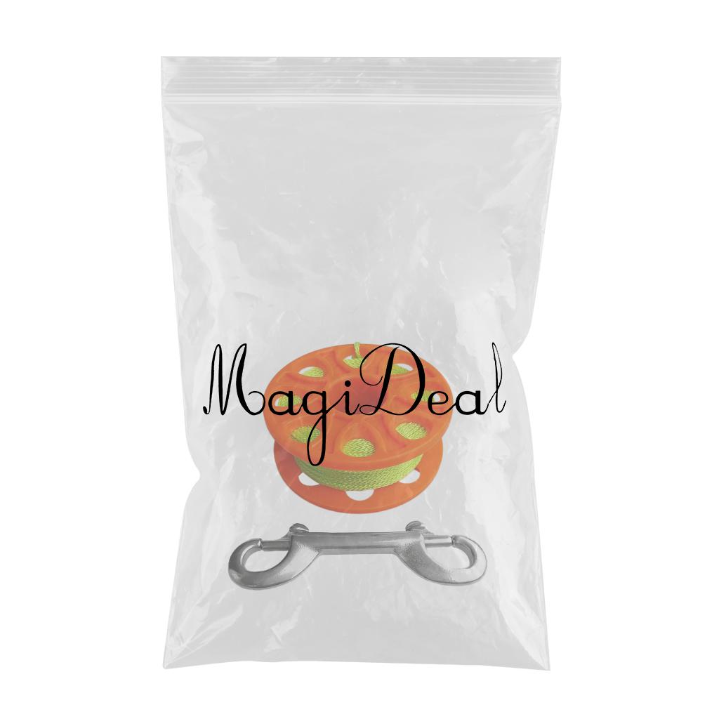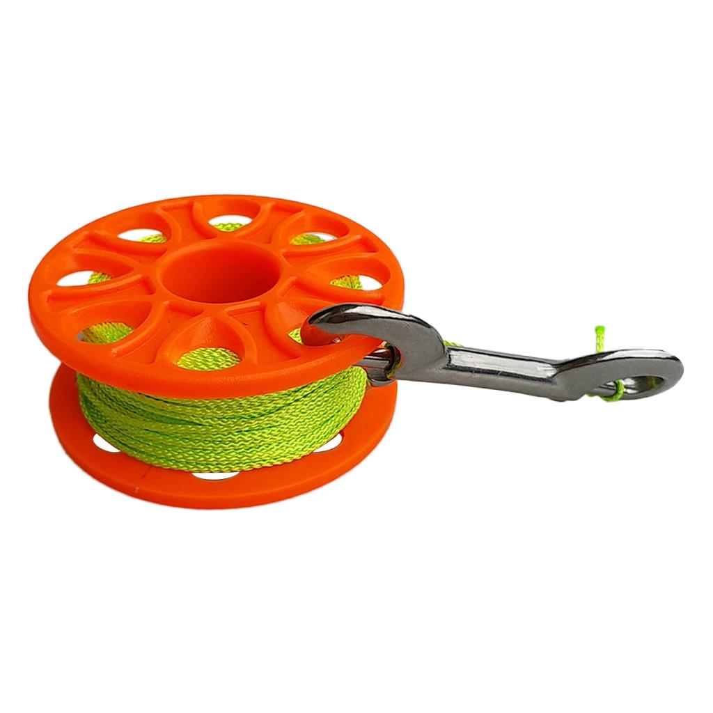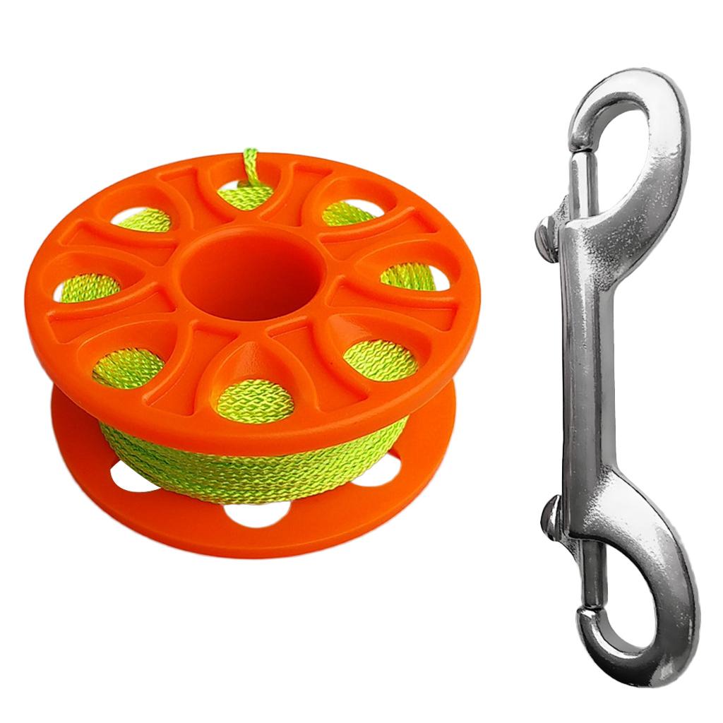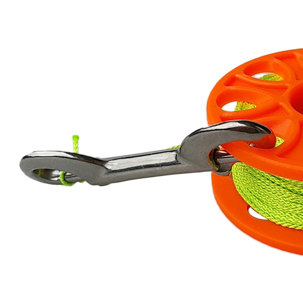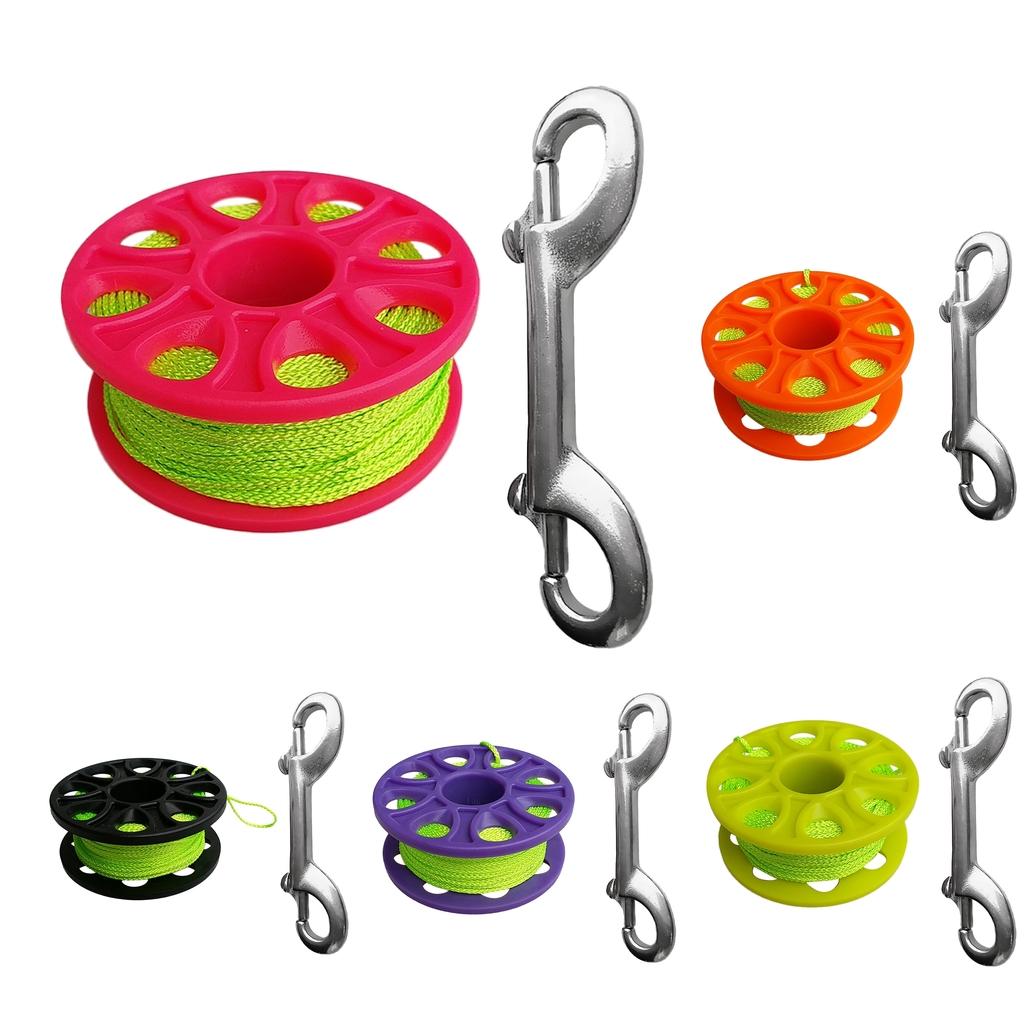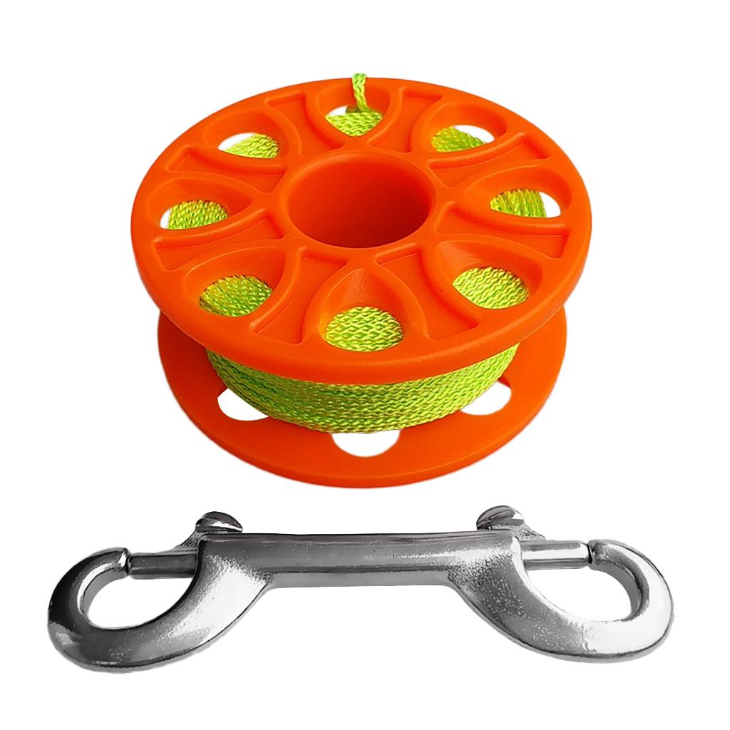 Scuba diving plastic compact finger spool reel with 15m high visibility wear-resistant line.
