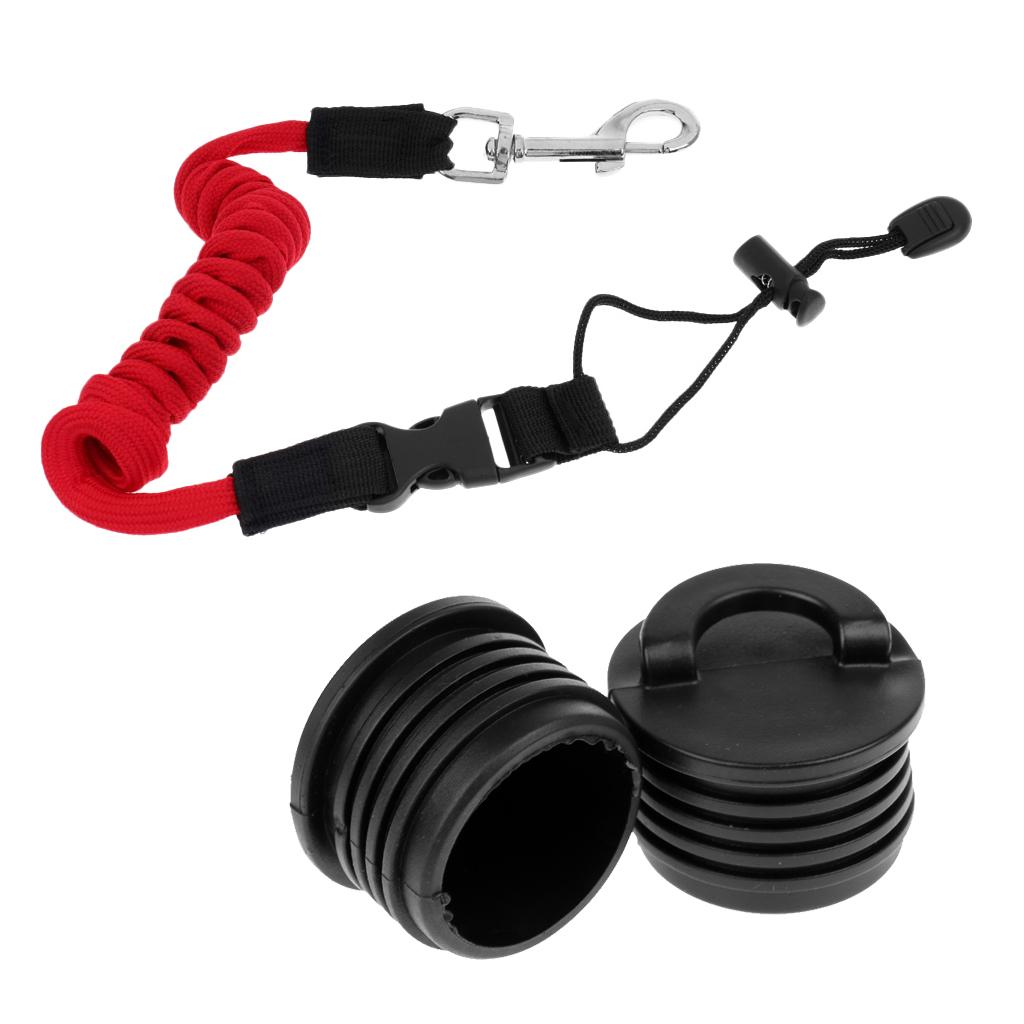 2 Pieces Kayak Canoe Scupper Stopper Plug Bung + 55" Red Paddle Leash Tether
