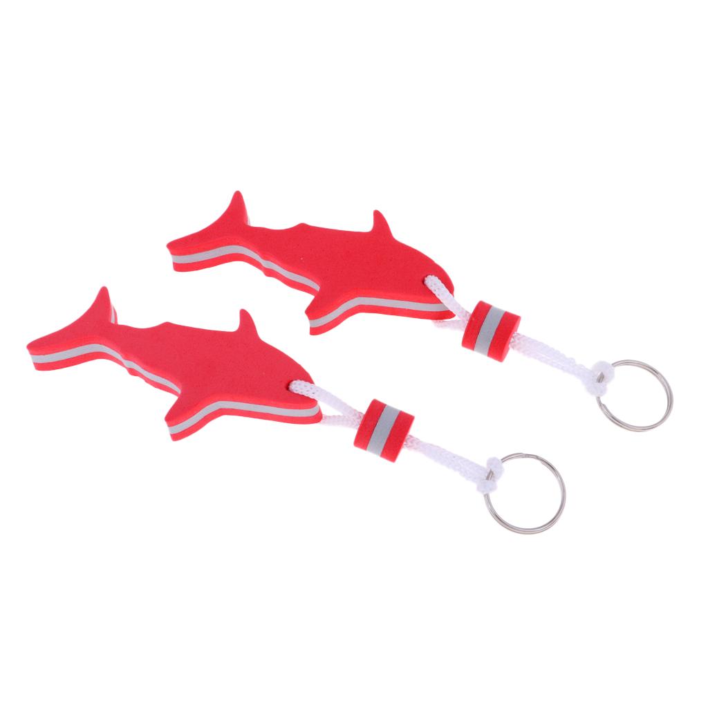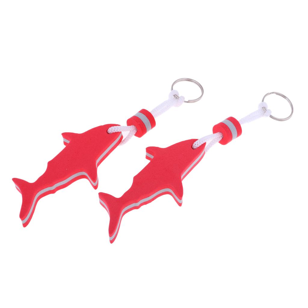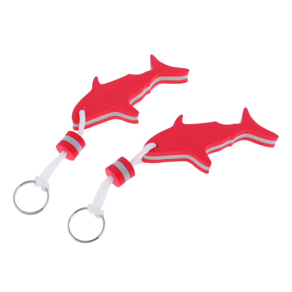 2 Pieces Shark Shaped EVA Floating Keychain Keyring Water Key Float Red