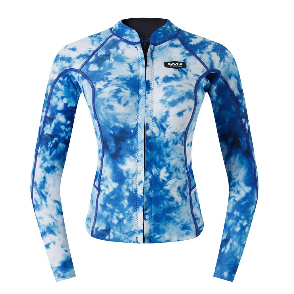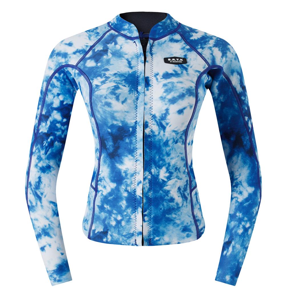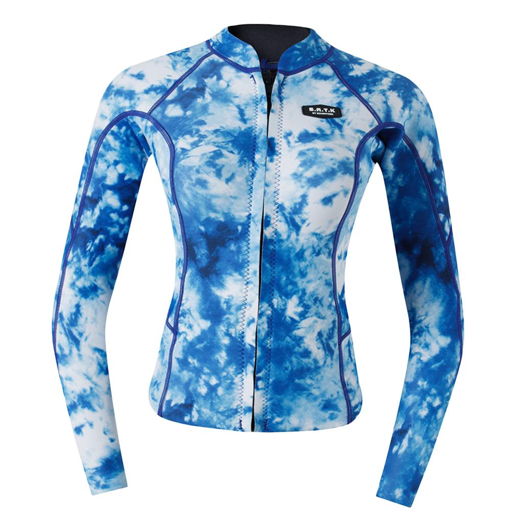 2mm Women Wetsuit Top Jacket UPF 50+ Long Sleeve Rash Guard Blue Camo L
