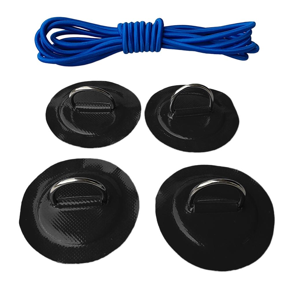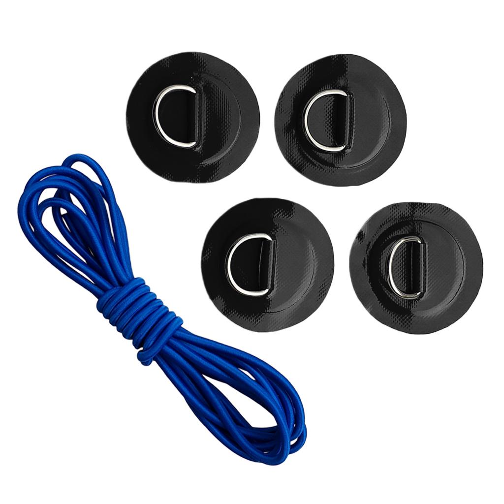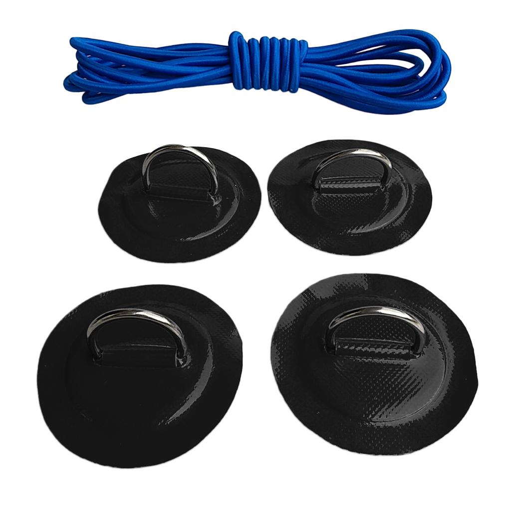 4 Pieces kayak inflatable boat D-ring round patch pad with 5mm 3.6m elastic shock cord, lightweight, strong, sturdy, long lasting and corrosion-resistant