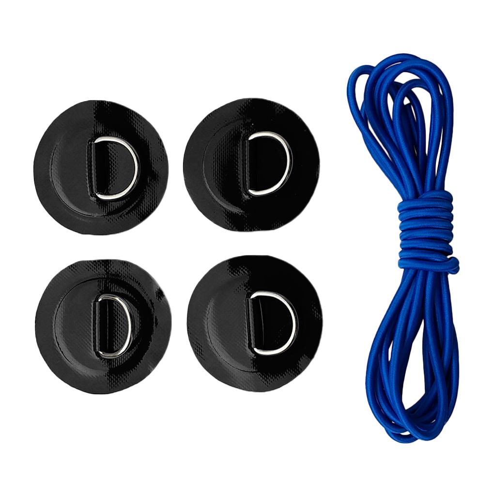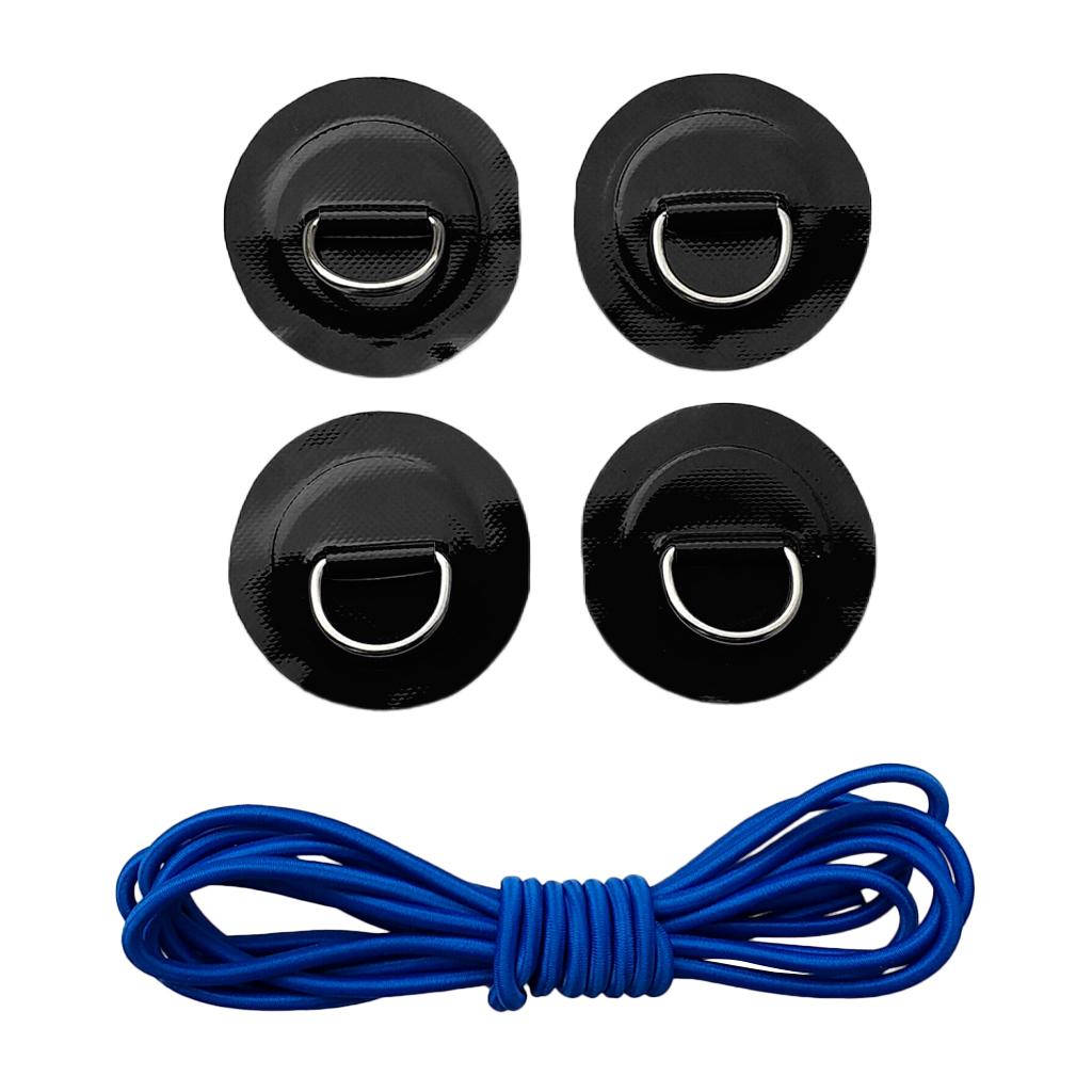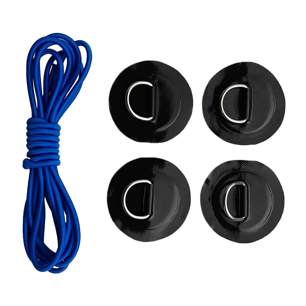 4 Pieces kayak inflatable boat D-ring round patch pad with 5mm 3.6m elastic shock cord, lightweight, strong, sturdy, long lasting and corrosion-resistant
