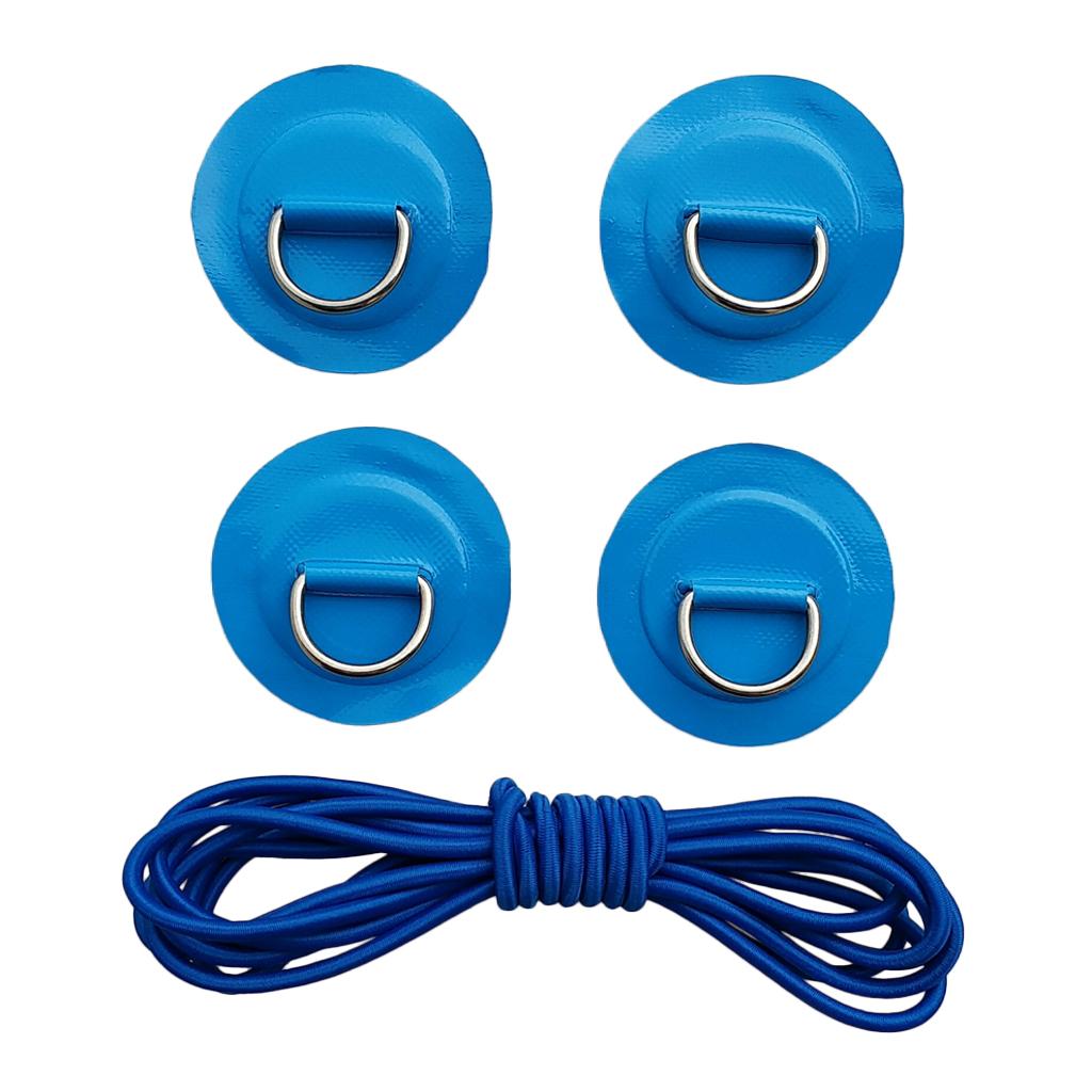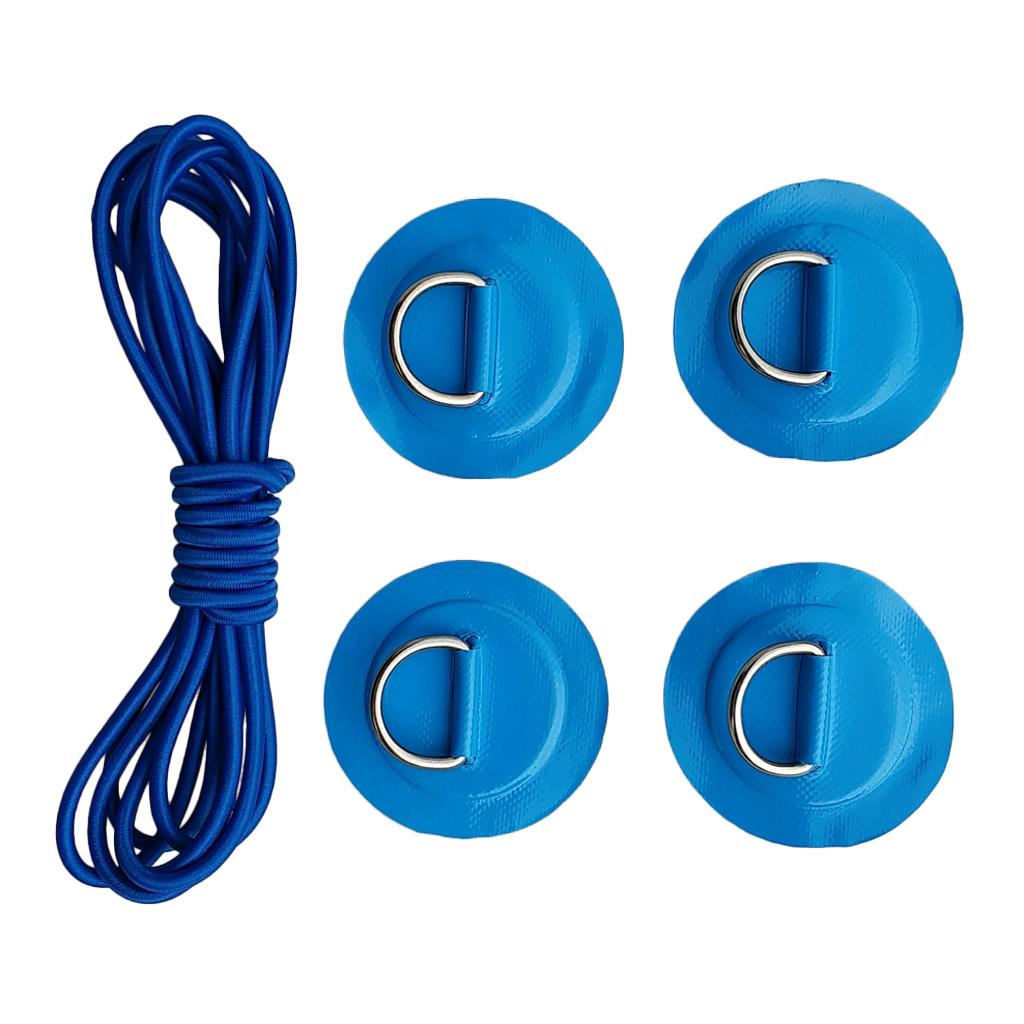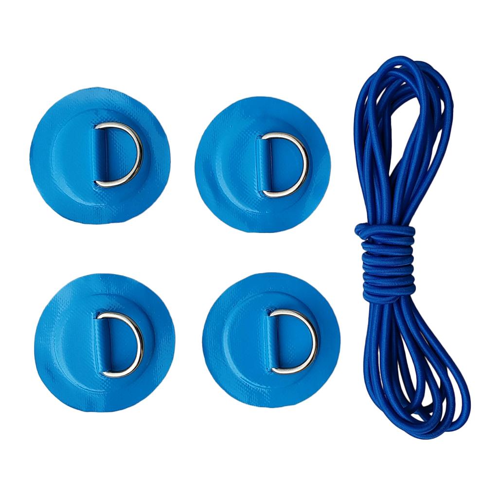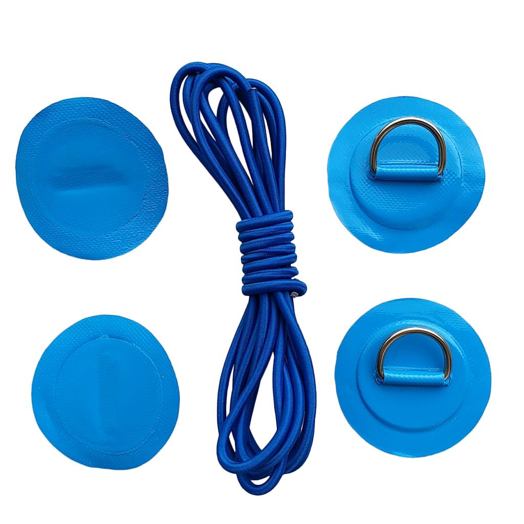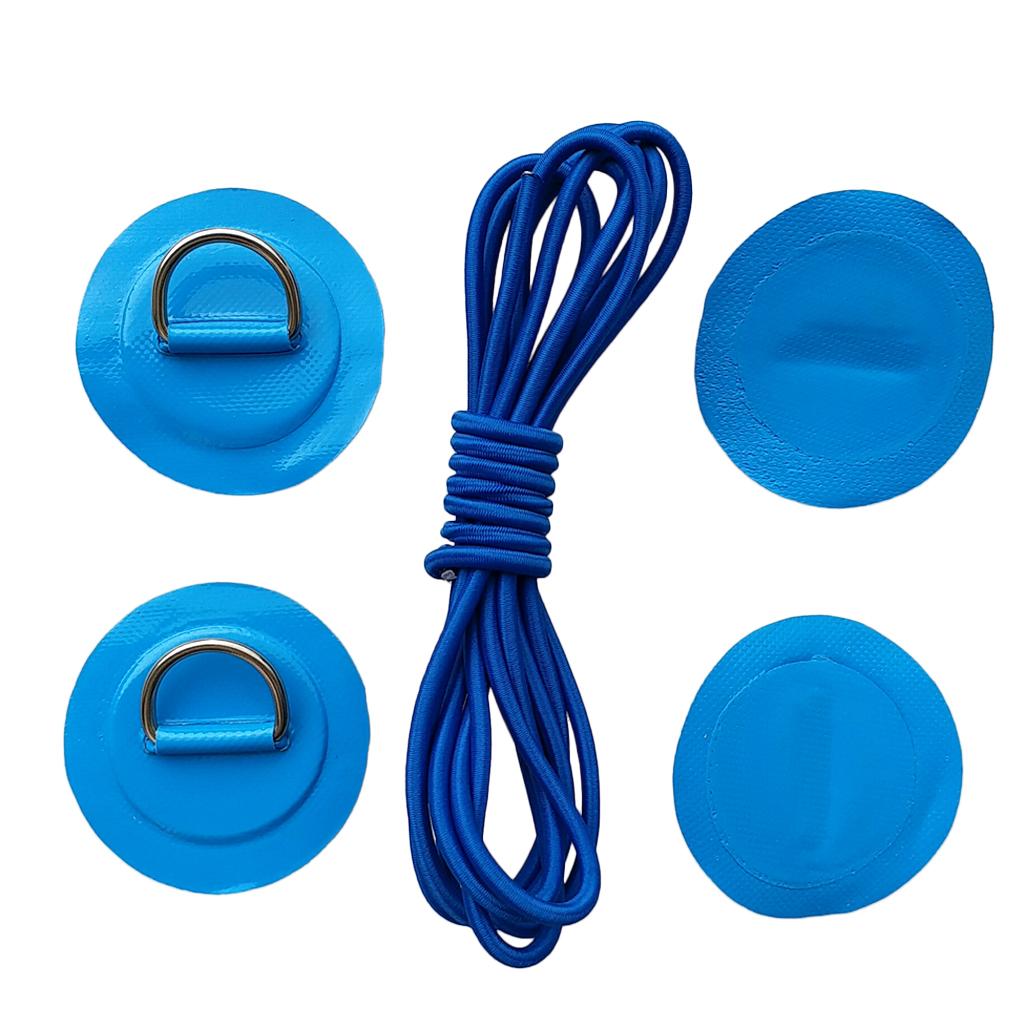 4 Pieces Inflatable Boat Kayak SUP D-ring Patch & Shock Bungee Cord Blue
